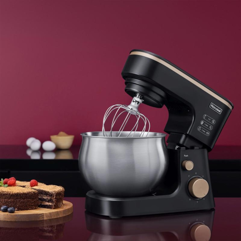 Кухонная машина Rondell RDE-1404 планетар.вращ. 2000Вт черный/золотистый