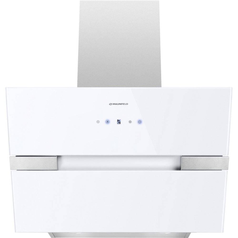 Кухонная вытяжка MAUNFELD/ Кухонная вытяжка MAUNFELD Mersey 60, наклонная, сенсорное управление, 3 скорости, 1050 м3/ч, таймер, дисплей, энергоэффективность В, уровень шума 54 дБ, цвет белый/вставка сатин