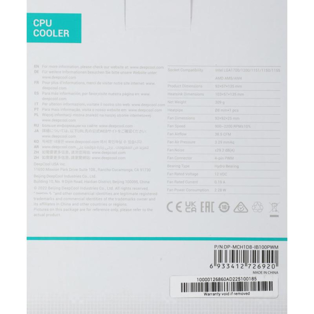 Кулер Deepcool Ice Blade 100 PWM Soc-AM5/AM4/1200/1700/1851 черный/синий 4-pin 15-29dB Al+Cu 100W 309gr Ret (DP-MCH1D8-IB100PWM) [DP-MCH1D8-IB100PWM]