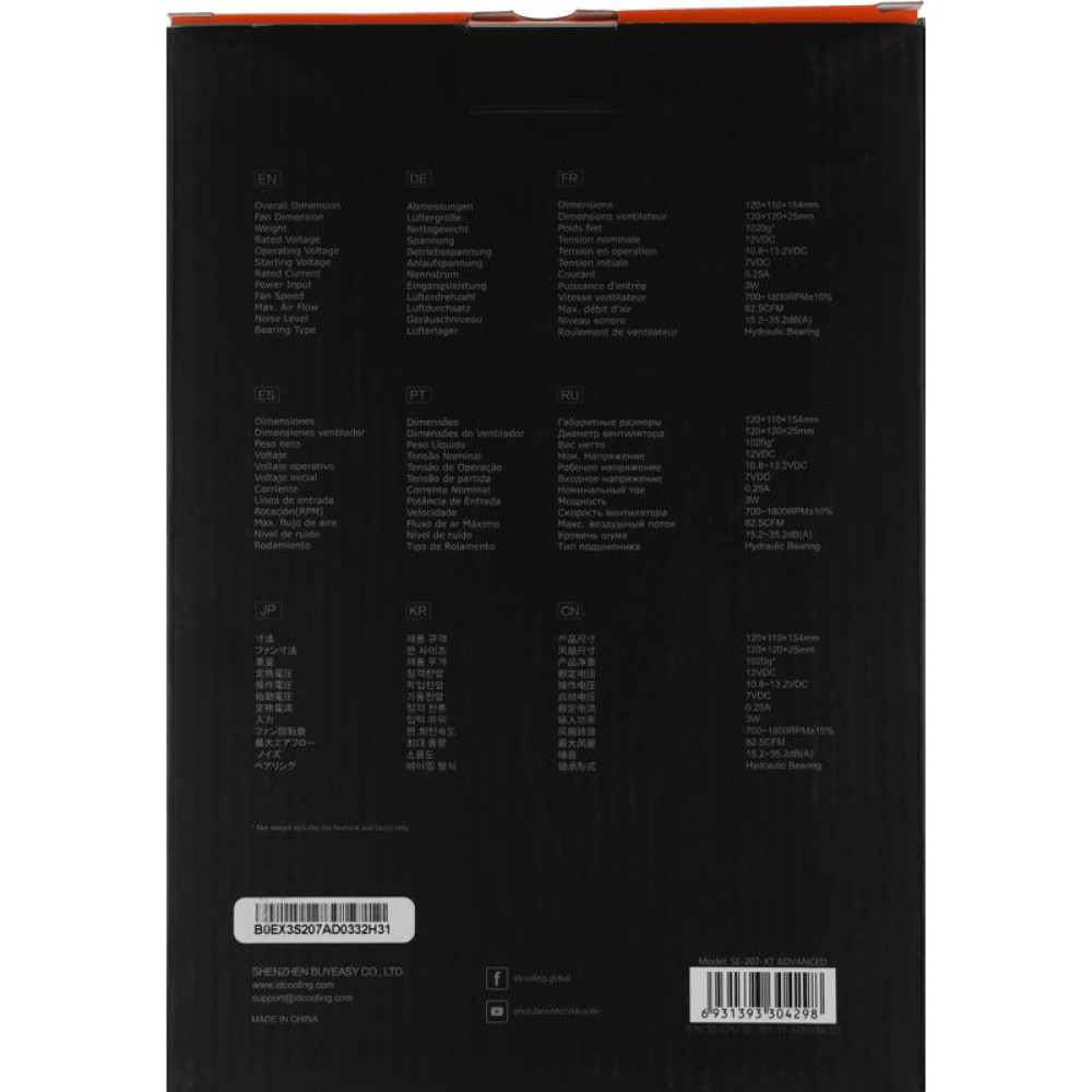 Кулер ID-Cooling SE-207-XT ADVANCED Soc-AM5/AM4/1200/1700/1851 черный 4-pin 15-35dB Al+Cu 280W 1020gr Ret [SE-207-XT ADVANCED]