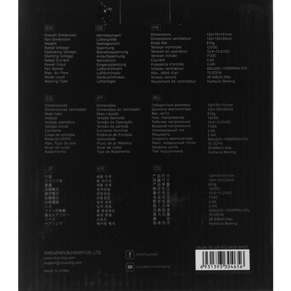 Кулер ID-Cooling SE-224-XTS ARGB Soc-AM5/AM4/1200/1700/1851 белый 4-pin + 3-pin 29dB Al+Cu 650gr Ret (SE-224-XTS ARGB WHITE) [SE-224-XTS ARGB WHITE]