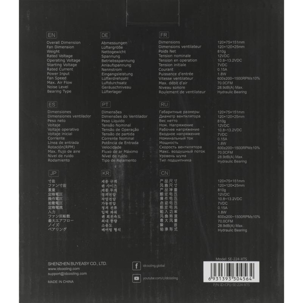 Кулер ID-Cooling SE-224-XTS Soc-AM5/AM4/1200/1700/1851 черный 4-pin 16-29dB Al+Cu 220W 650gr Ret [SE-224-XTS]