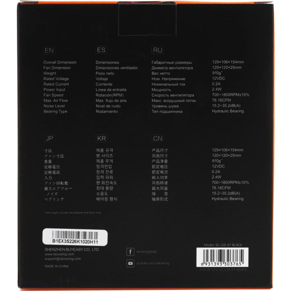 Кулер ID-Cooling SE-226-XT Soc-AM5/AM4/1151/1200/2066/1700 черный 4-pin 15-35dB Al+Cu 250W 1300gr Ret (SE-226-XT BLACK) [SE-226-XT BLACK]