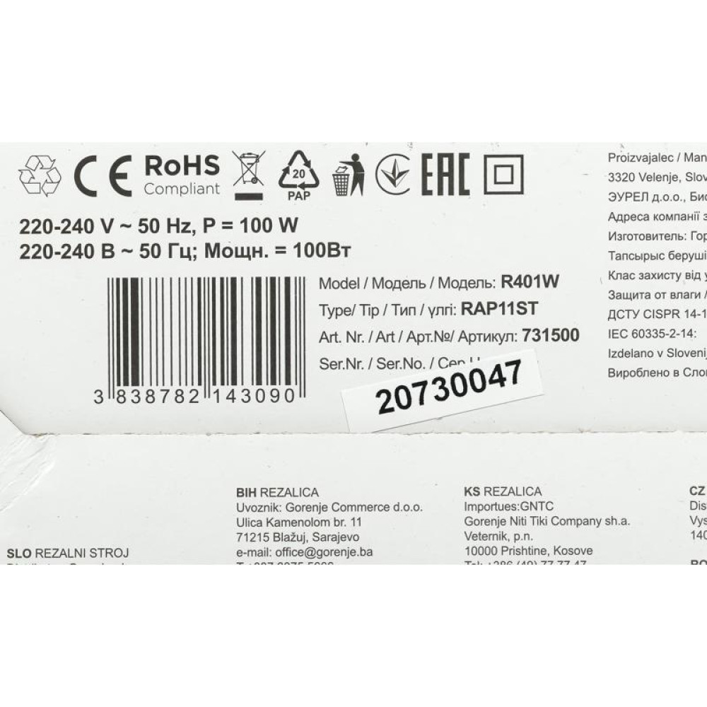 Ломтерезка Gorenje R401W 100Вт (нарезка до 17мм) белый