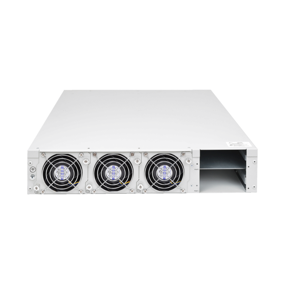 Отказоустойчивость достигается за счет резервирования источников питания в режиме «1+1» и использования сменных модулей вентиляции. Все резервируемые компоненты могут быть заменены без отключения устройства, что обеспечивает непрерывность работы сети и минимальные простои.