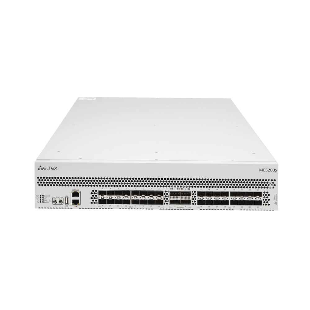 Маршрутизатор ME5200S, 32 x 10GE SFP+, 4 x 40GE/100GE (QSFP28), 2 слота для модулей питания