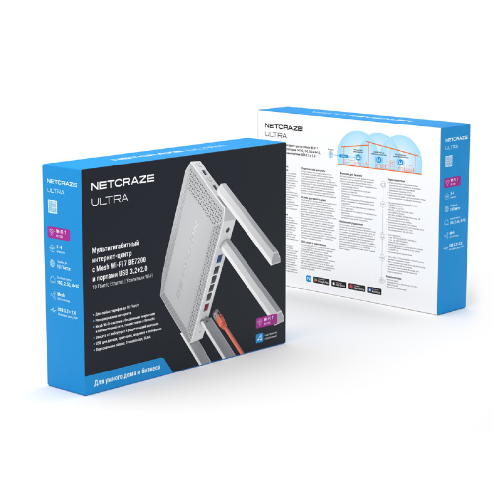 Маршрутизатор/ Netcraze Ultra Мультигигабитный интернет-центр с Mesh Wi-Fi 7 BE7200, Smart-коммутатором 1?10G, 1?2.5G и 4?1G, многофункциональными портами USB 3.2 и 2.0