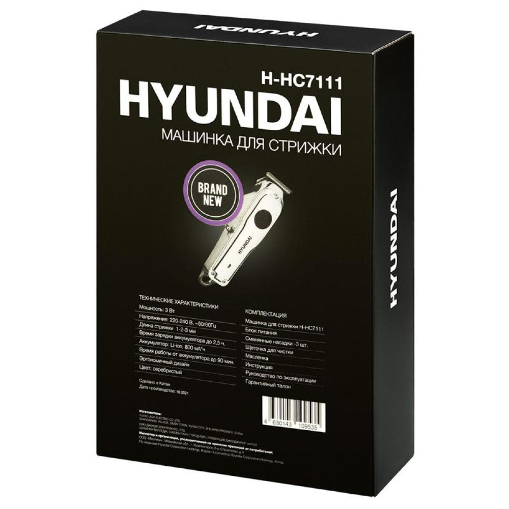 Машинка для стрижки/ Машинка для стрижки Hyundai H-HC7111 серебристый/черный 5Вт (насадок в компл:3шт)