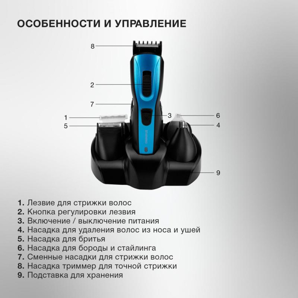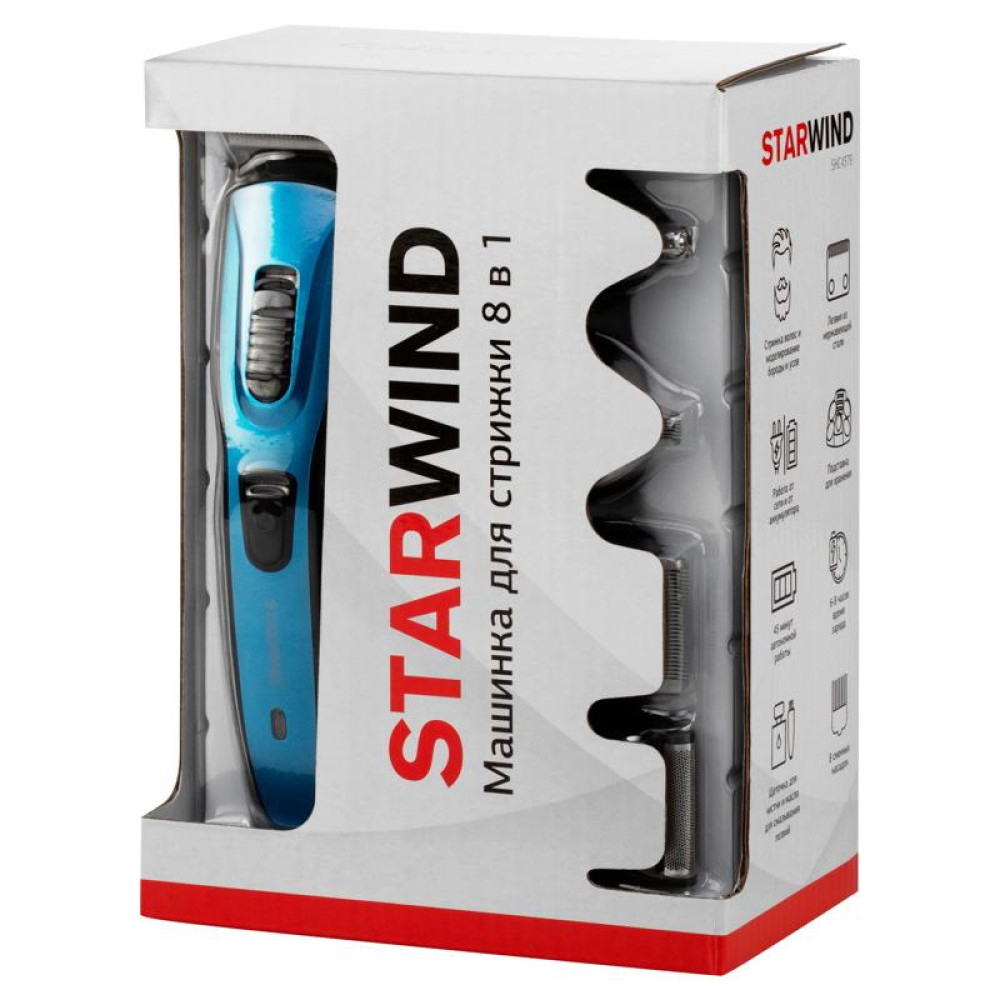 Машинка для стрижки/ Машинка для стрижки Starwind SHC 4379 синий/черный 3Вт (насадок в компл:9шт)