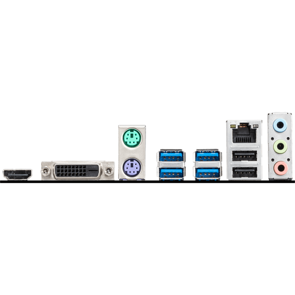 Для вывода изображения доступны порты DVI-D и HDMI. Это удобно для подключения как новых, так и более старых мониторов и телевизоров. Для хранения данных предусмотрены четыре порта SATA, позволяющие подключать жёсткие диски и SSD. Кроме того, плата поддерживает установку накопителей M.2, что позволяет значительно увеличить скорость работы системы благодаря современным SSD.