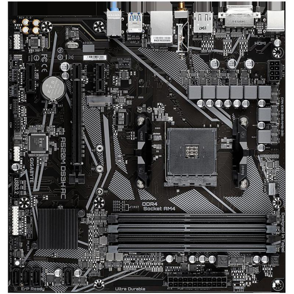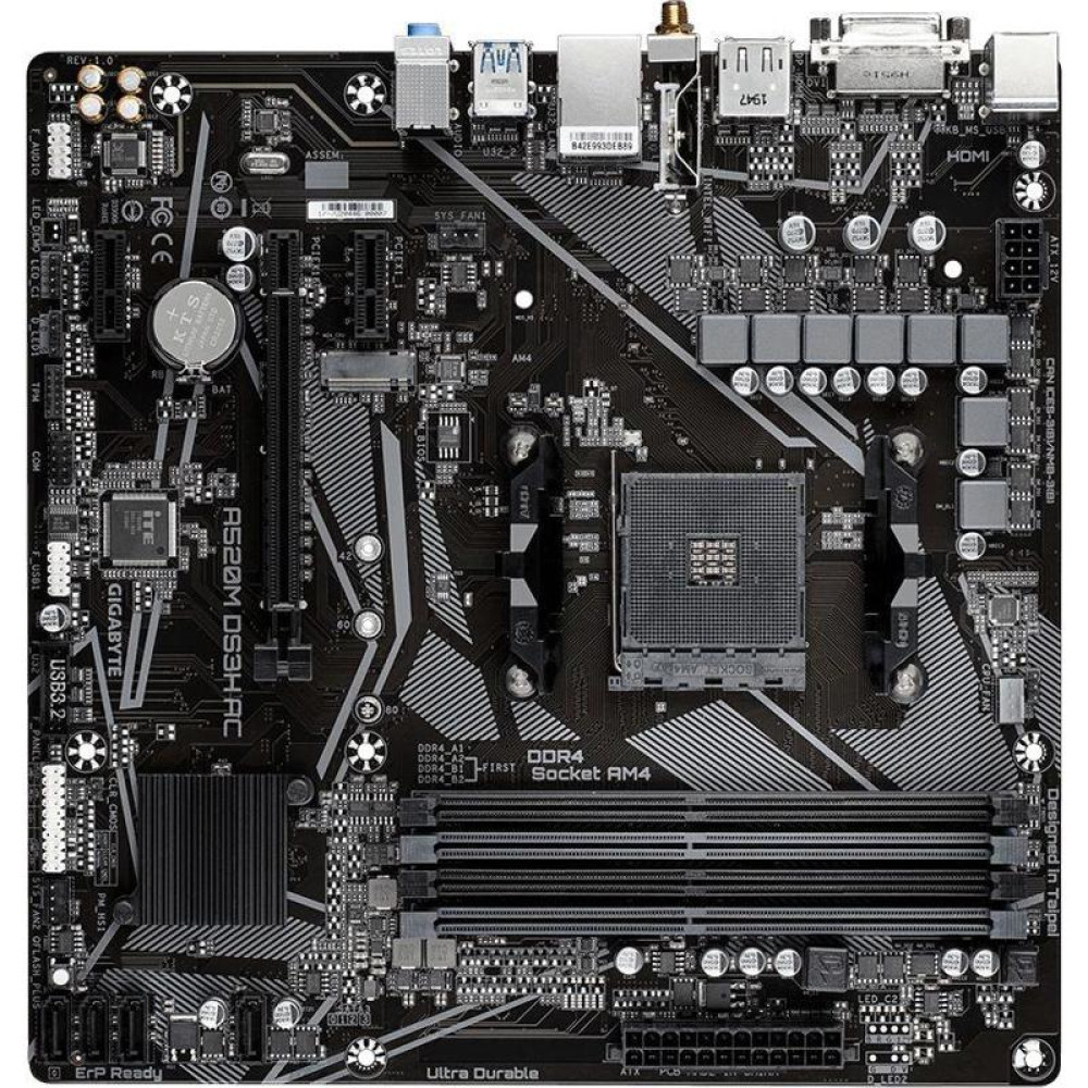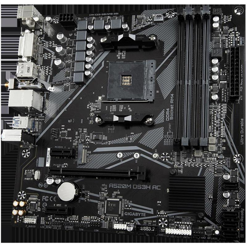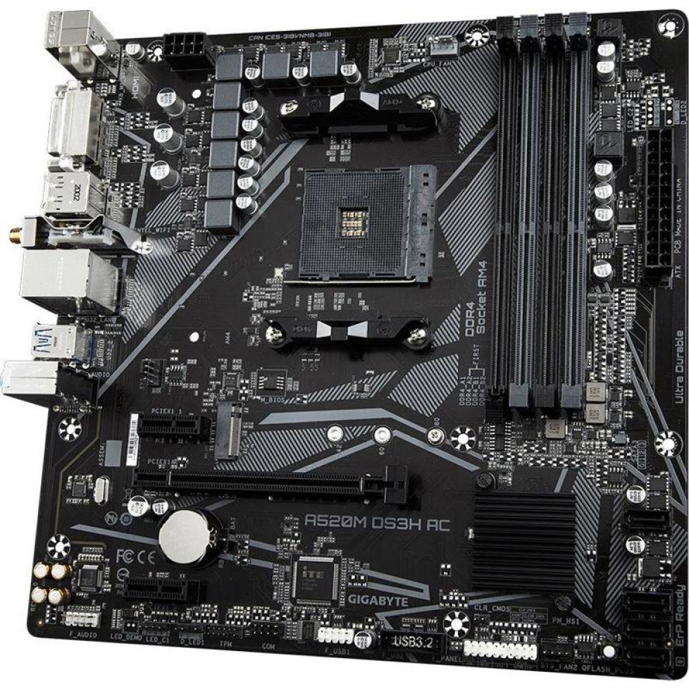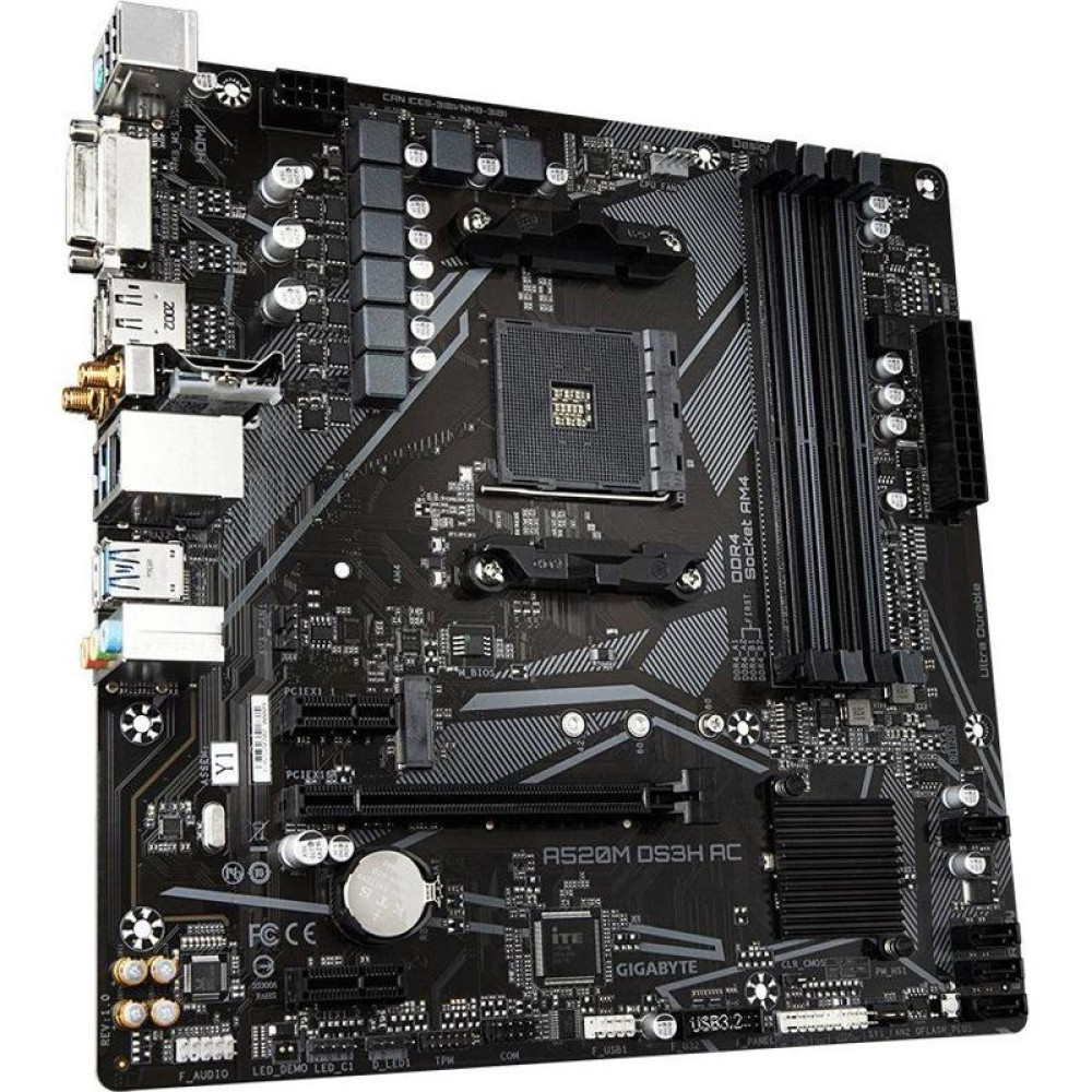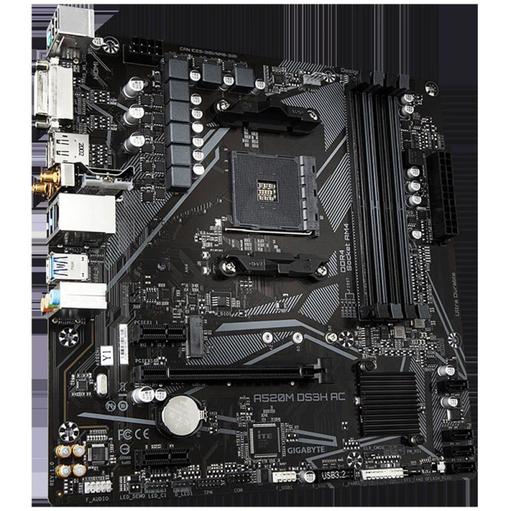 Материнская плата Gigabyte A520M DS3H AC Soc-AM4 AMD A520 4xDDR4 mATX AC`97 8ch(7.1) GbLAN RAID+HDMI+DP
