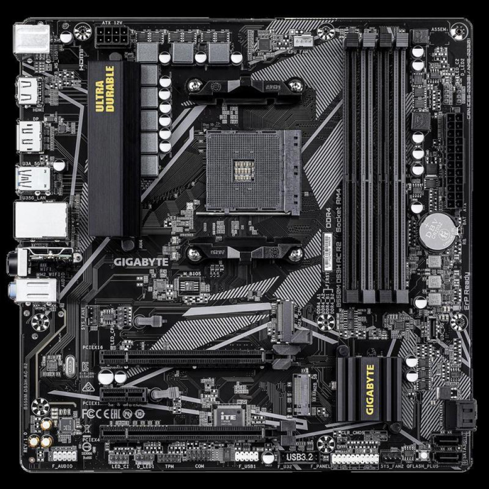 Материнская плата Gigabyte B550M DS3H AC R2 Soc-AM4 AMD B550 4xDDR4 mATX AC`97 8ch(7.1) GbLAN RAID+HDMI+DP