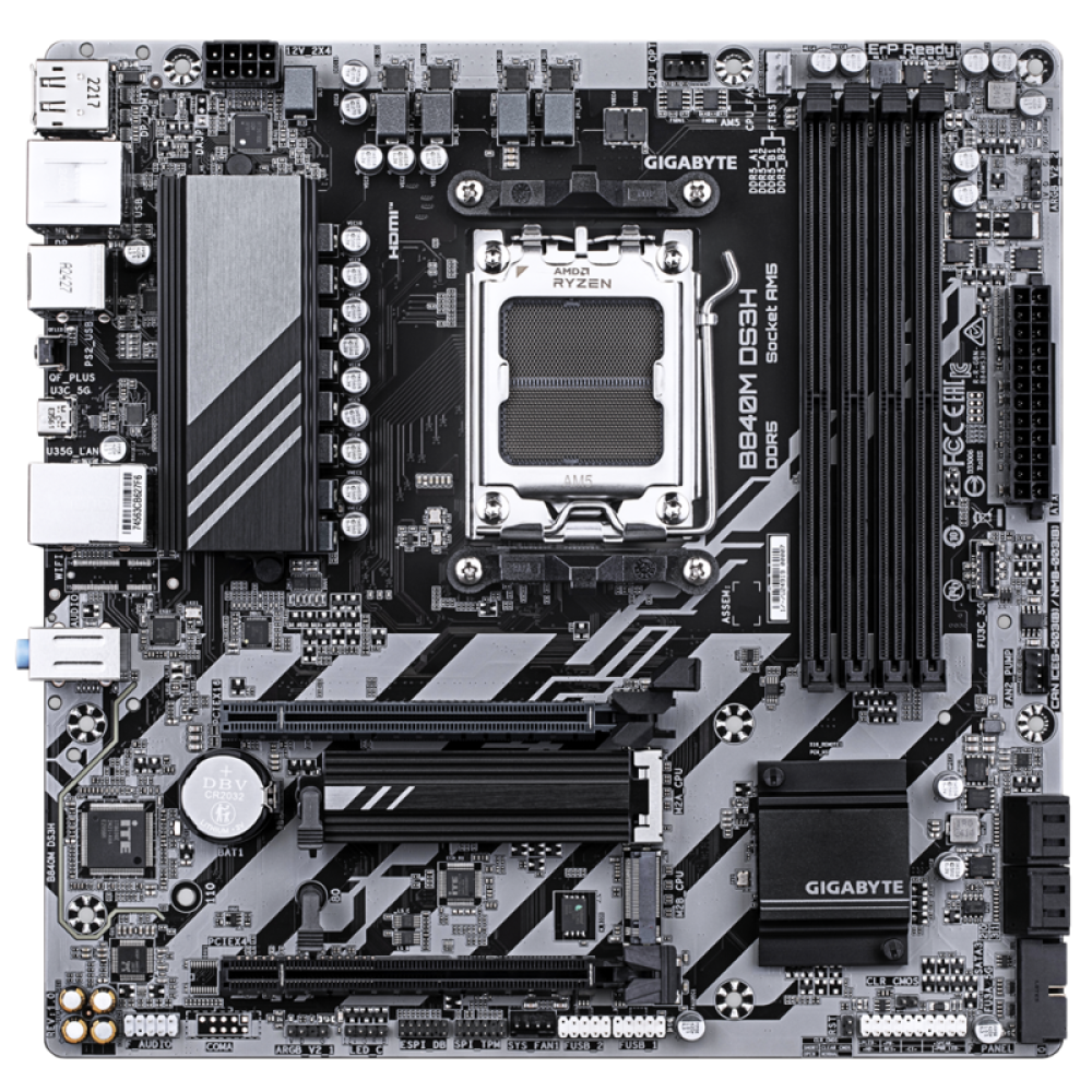 Материнская плата Gigabyte B840M DS3H SocketAM5 AMD B840 4xDDR5 mATX AC`97 8ch(7.1) 2.5Gg RAID+HDMI+DP