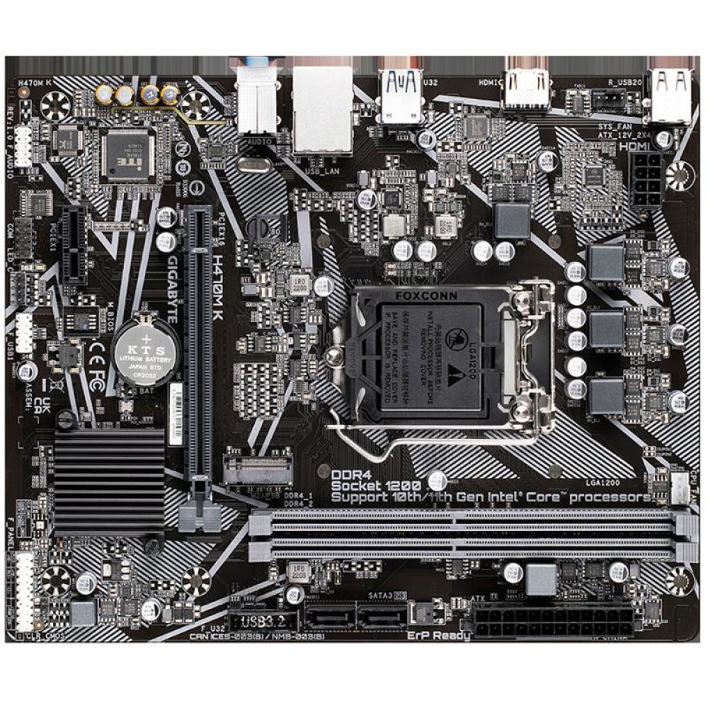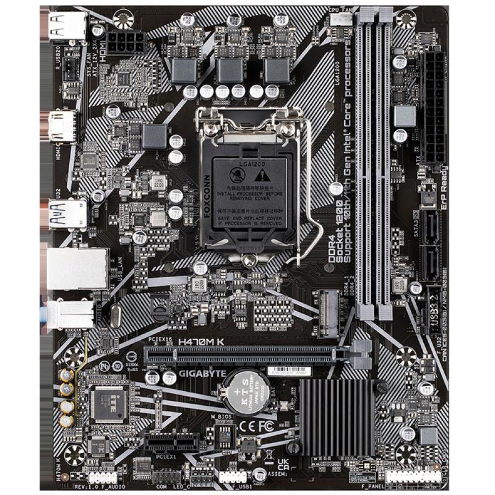 Материнская плата Gigabyte OEM H470M K, Socket 1200, IntelH470, 2xDDR4-2333, HDMI, 1xPCI-Ex16, 1xPCI-Ex1, 2xSATA3, 1xM.2, 8 Ch Audio, GLan, (4+2)xUSB2.0, (2+2)xUSB3.2, mATX, RTL {} oem