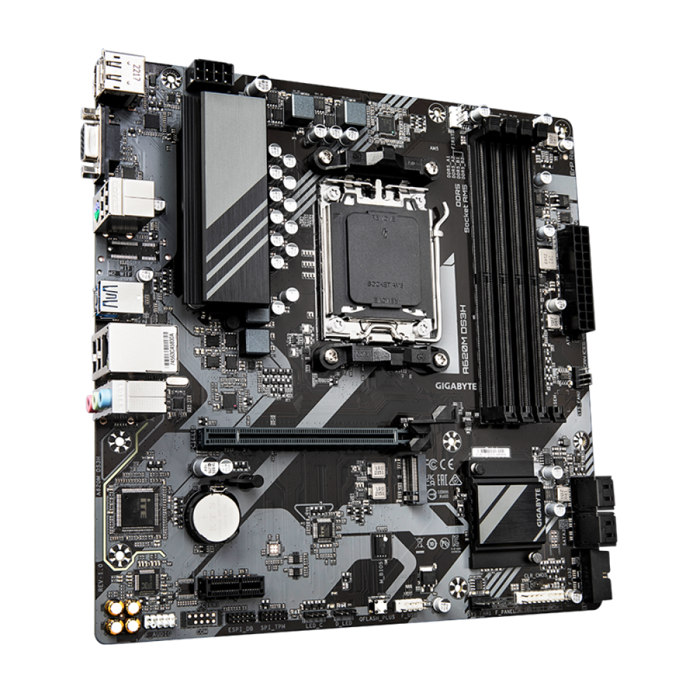 Материнская плата MB GIGABYTE AMD A620 sAM5, 4xDDR5(192GB), D-SUB/HDMI 2.1/DP, 1xPCIe 4.0x16, 1xPCIe 4.0, 1xLAN, 4xSATA 6Gb/s, 1xM.2, 1xUSB-C, 1xUSB 3.2, 4xUSB 2.0, 1xPS/2, mATX