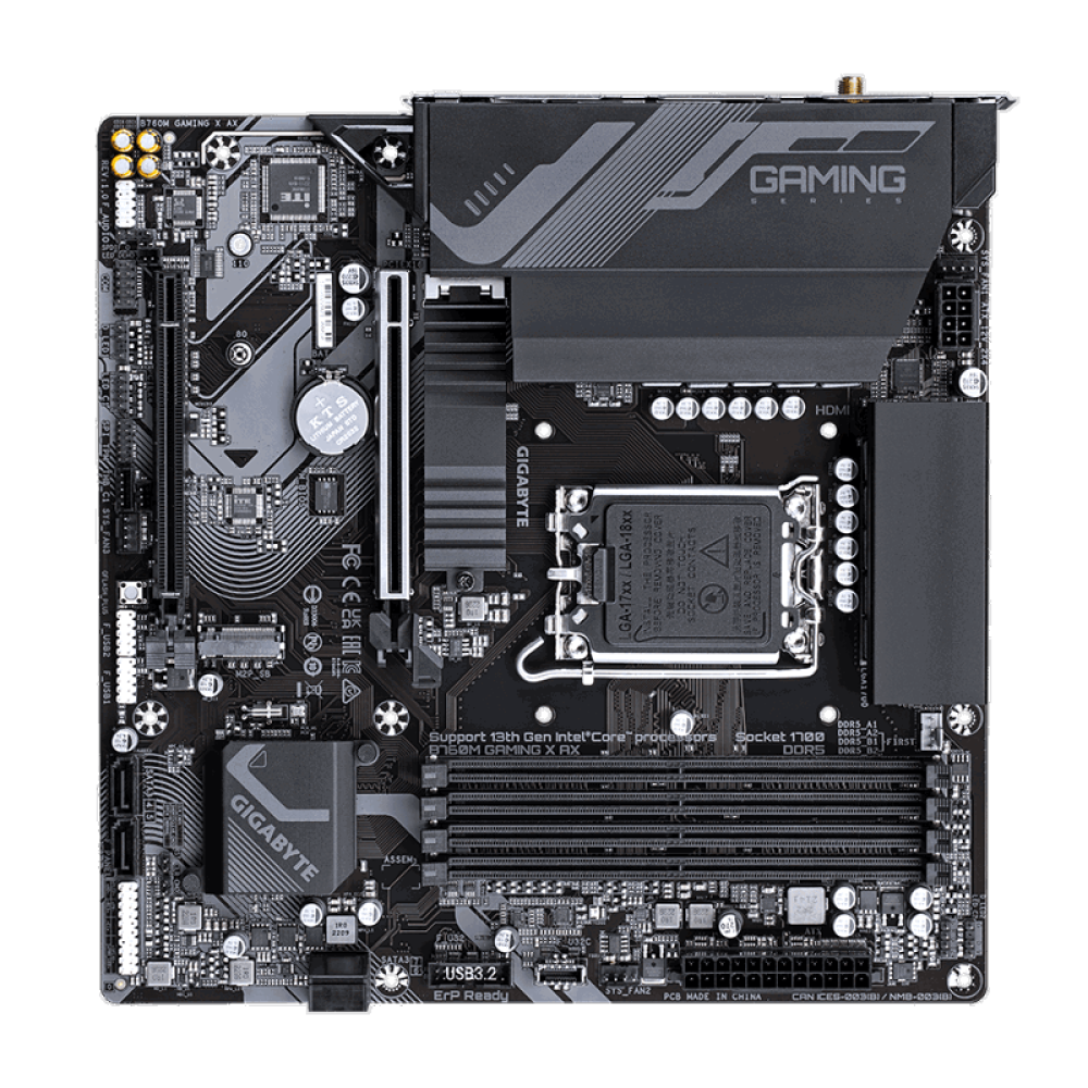 Материнская плата MB GIGABYTE INTEL B760 s1700, 4xDDR5(192GB), HDMI 2.0/DP, 1xPCIe 4.0x16, 1xPCIe 3.0x16, 1xLAN (2.5GbE), Wi-Fi, BT, 4xSATA 6Gb/s, 2xM.2, 3xUSB 3.2, 5xUSB 2.0, mATX