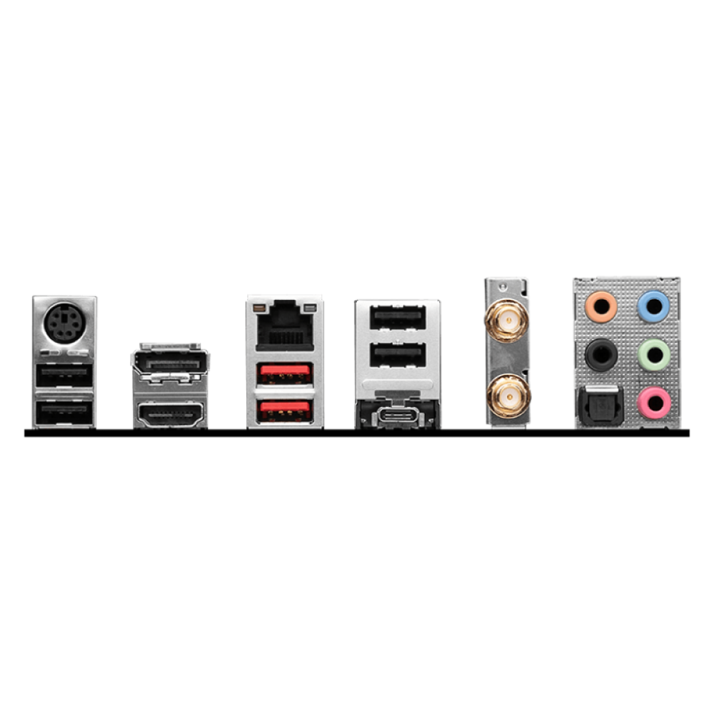 Для быстрого соединения с интернетом есть проводной LAN с скоростью 2,5 Гбит/с, а также Wi-Fi и Bluetooth для беспроводных устройств. В разъемах есть USB-C, два USB 3.2 и четыре USB 2.0 — чтобы подключить все ваши гаджеты, мыши, клавиатуры и другие устройства. Есть также порт PS/2 для старых устройств. Такой набор разъемов обеспечивает удобство и универсальность использования.