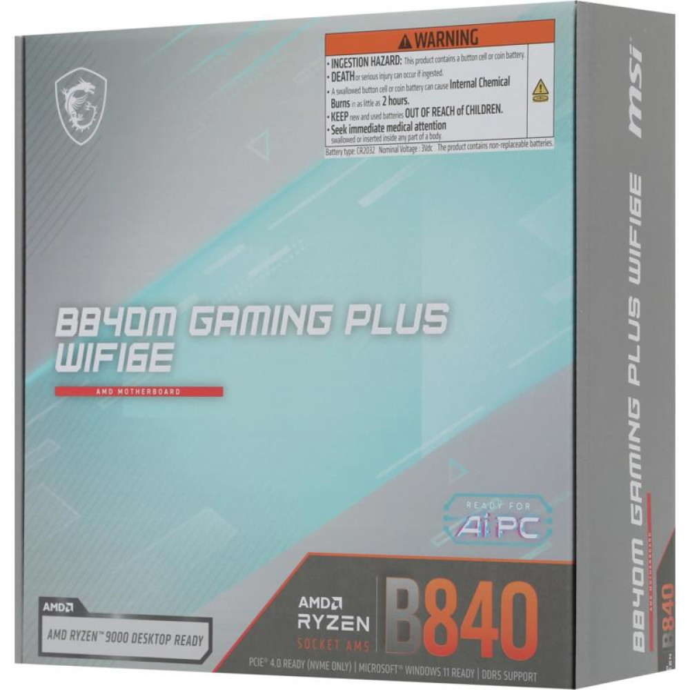 Материнская плата MSI B840M GAMING PLUS WIFI6E SocketAM5 AMD B840 4xDDR5 mATX AC`97 8ch(7.1) 2.5Gg RAID+HDMI