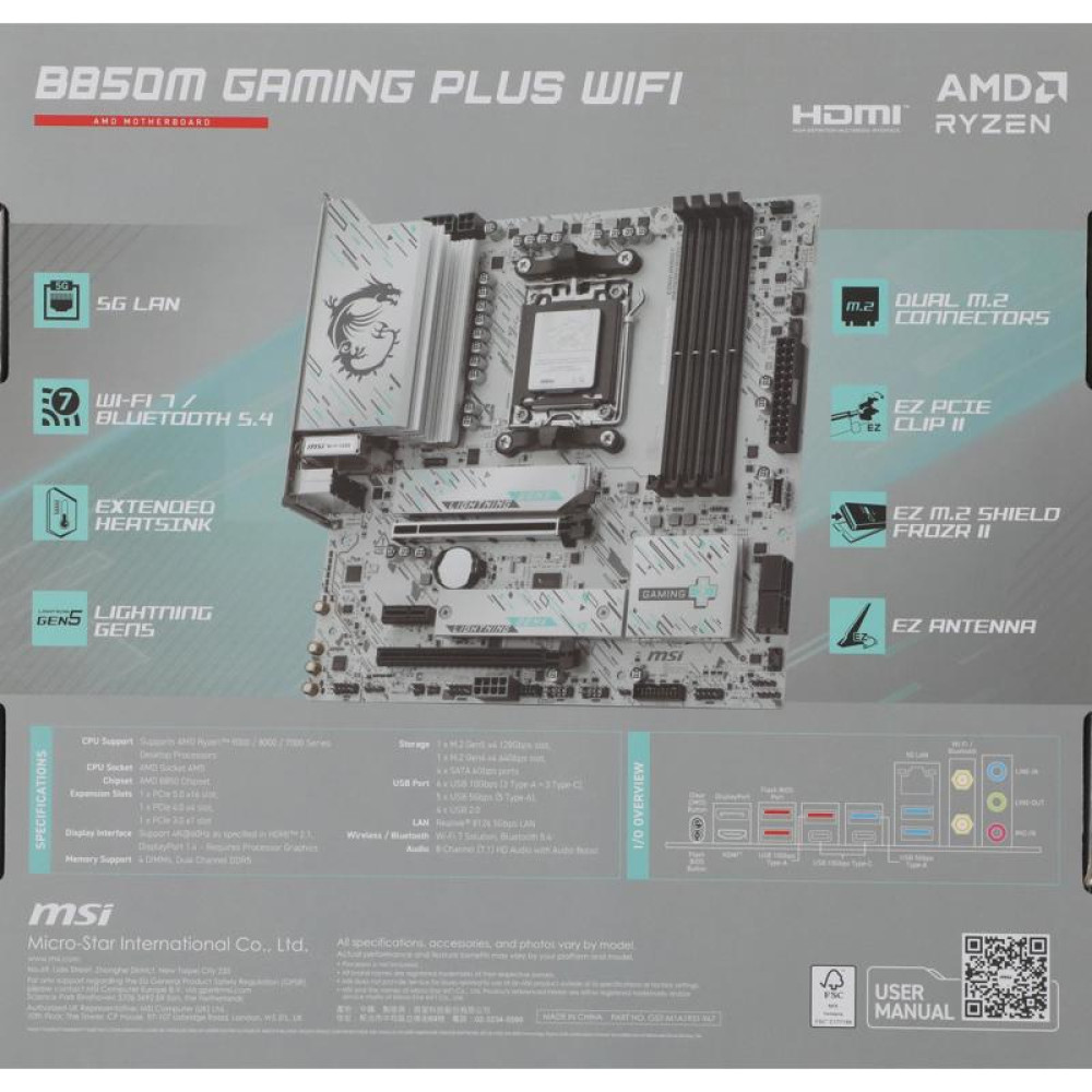 Материнская плата MSI B850M GAMING PLUS WIFI SocketAM5 AMD B850 4xDDR5 mATX AC`97 8ch(7.1) 5Gigabit RAID+HDMI+DP