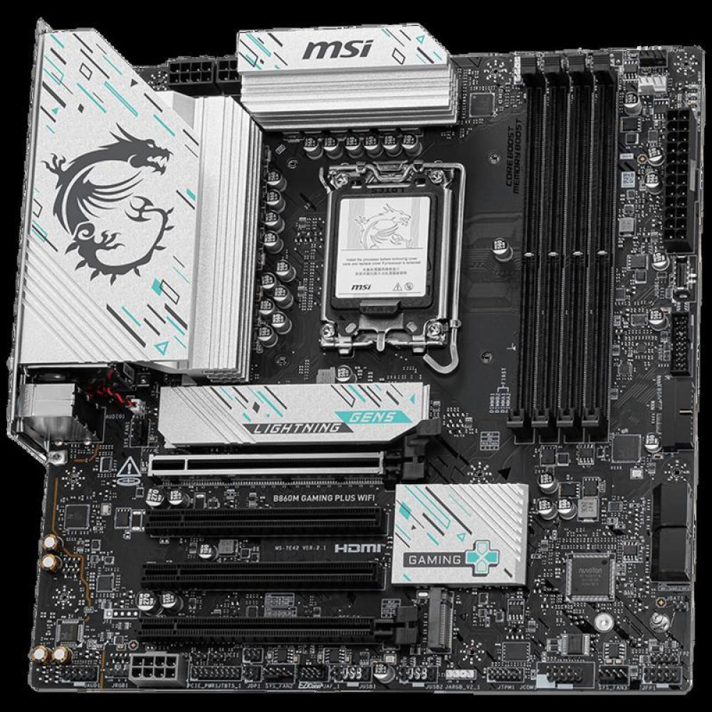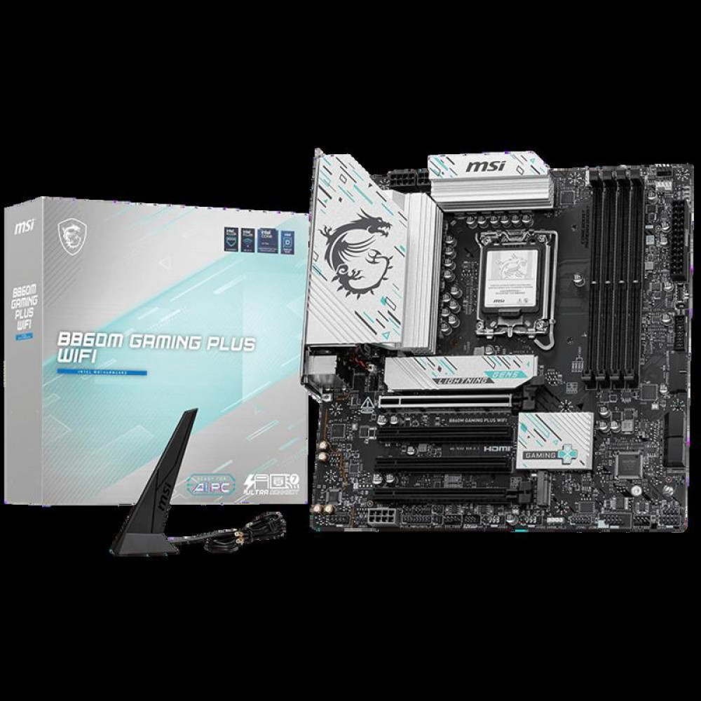 Материнская плата MSI B860M GAMING PLUS WIFI Soc-1851 Intel B860 4xDDR5 mATX AC`97 8ch(7.1) 5Gigabit RAID+HDMI+DP