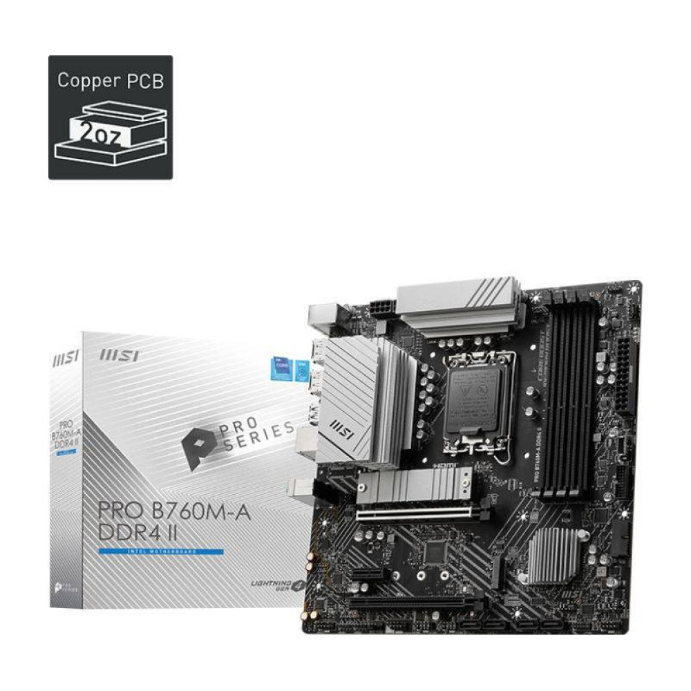 Материнская плата MSI PRO B760M-A DDR4 II Soc-1700 Intel B760 4xDDR4 mATX AC`97 8ch(7.1) 2.5Gg+HDMI+DP