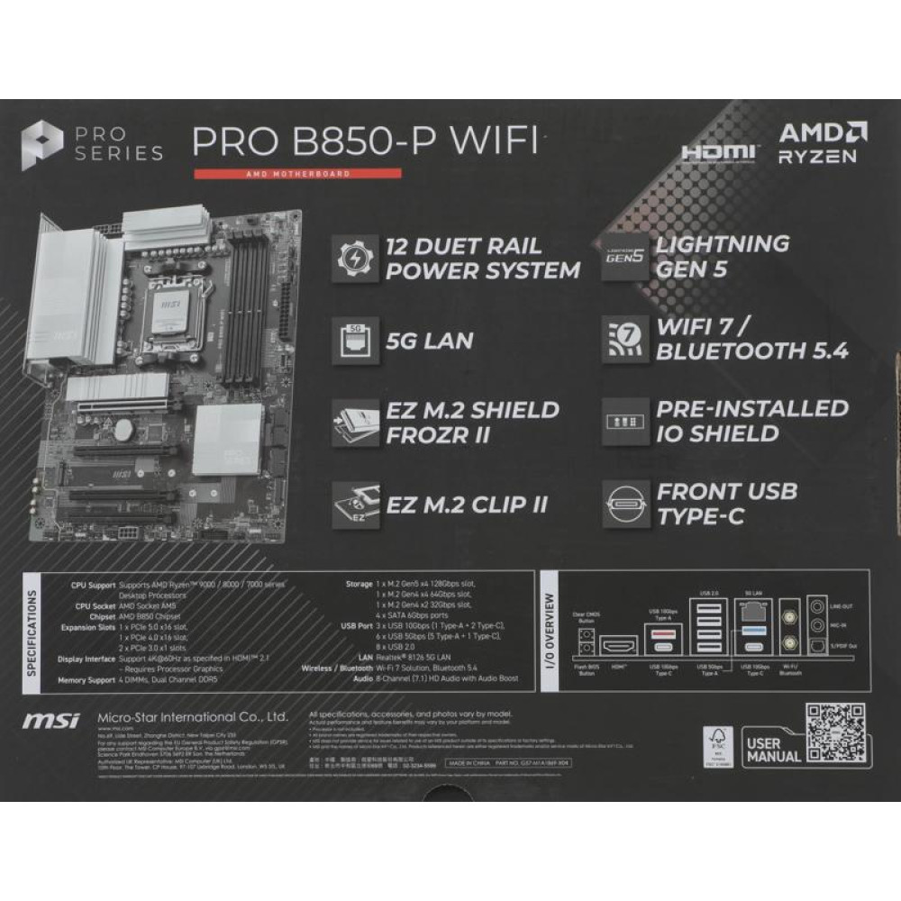 Материнская плата MSI PRO B850-P WIFI SocketAM5 AMD B850 4xDDR5 ATX AC`97 8ch(7.1) 5Gigabit RAID+HDMI