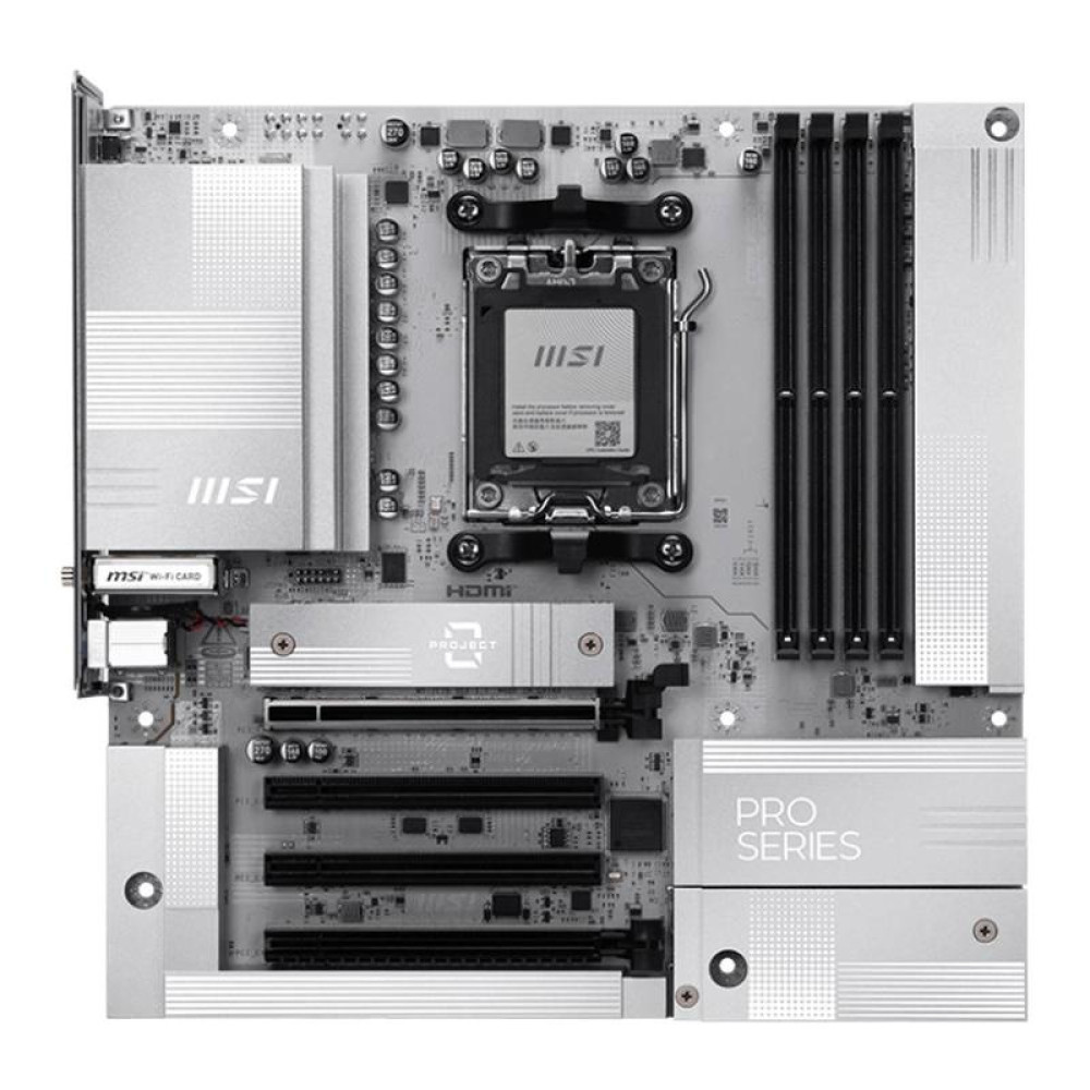 Материнская плата MSI PRO B850M-A WIFI PZ B850, AM5, 4*DDR5, 4*PCIEx16, 2*M.2, 3*TypeC, 3*USB3.2Gen2, 5*USB3.2Gen1, 4*USB2.0, 4*SATA3.0, 5G, DP, HDMI, M-ATX, RTL