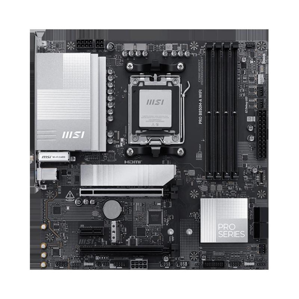 Материнская плата MSI PRO B850M-A WIFI SocketAM5 AMD B850 4xDDR5 mATX AC`97 8ch(7.1) 5Gigabit RAID+HDMI+DP