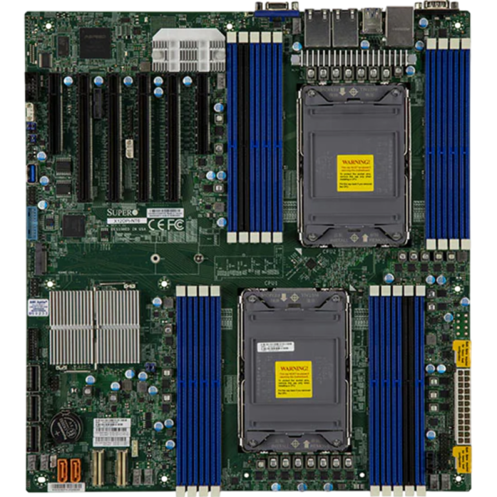 Материнская плата SuperMicro MBD-X12DPI-NT6-B — это высокопроизводительная серверная платформа формата EATX, предназначенная для создания мощных вычислительных систем, рабочих станций и серверов. Она построена на основе сокета LGA 4189 и поддерживает установку двух процессоров Intel Xeon Scalable нового поколения, что обеспечивает исключительную производительность для решения самых требовательных задач, включая виртуализацию, обработку больших данных, научные вычисления и построение корпоративных ЦОД.