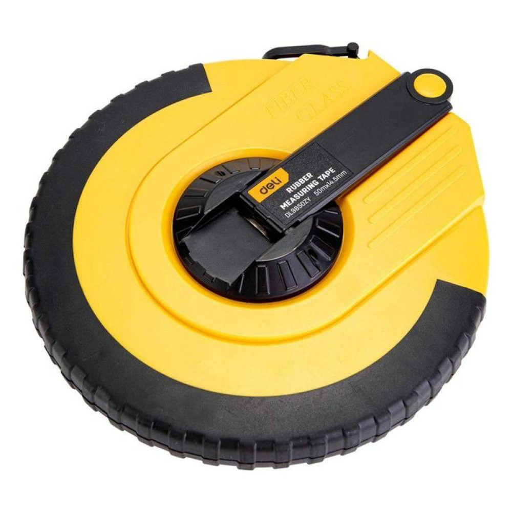 Мерная лента Deli DL9850ZY 50м x 14.5мм, ударопрочный корпус, полотно из стекловолокна и ПВХ