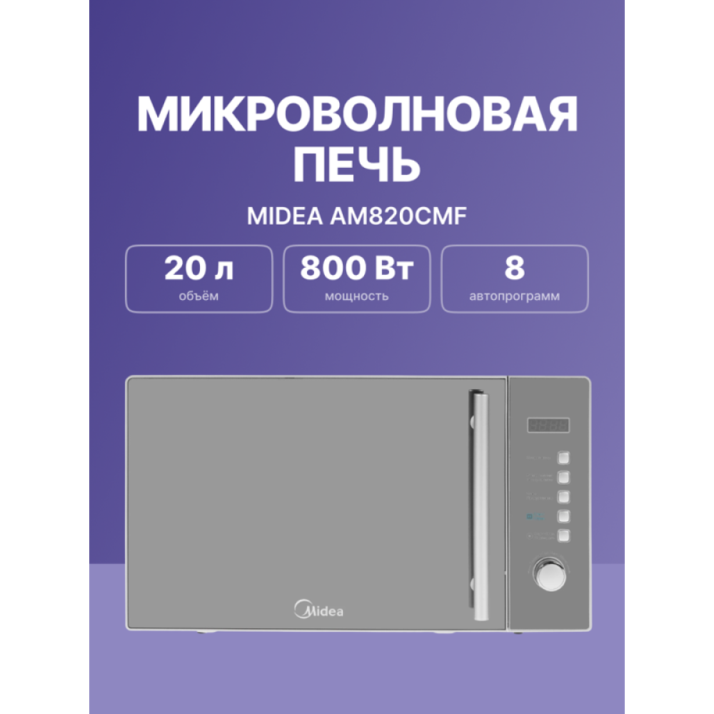 Микроволновая печь Midea/ 20 л. 800 Вт, тактовое управление. LED-дисплей. Цвет серебристый