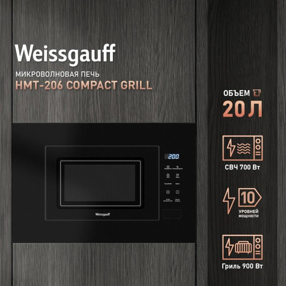 Микроволновая печь/ Микроволновая печь Weissgauff HMT-206 Compact Grill 20л. 700Вт черный (встраиваемая)