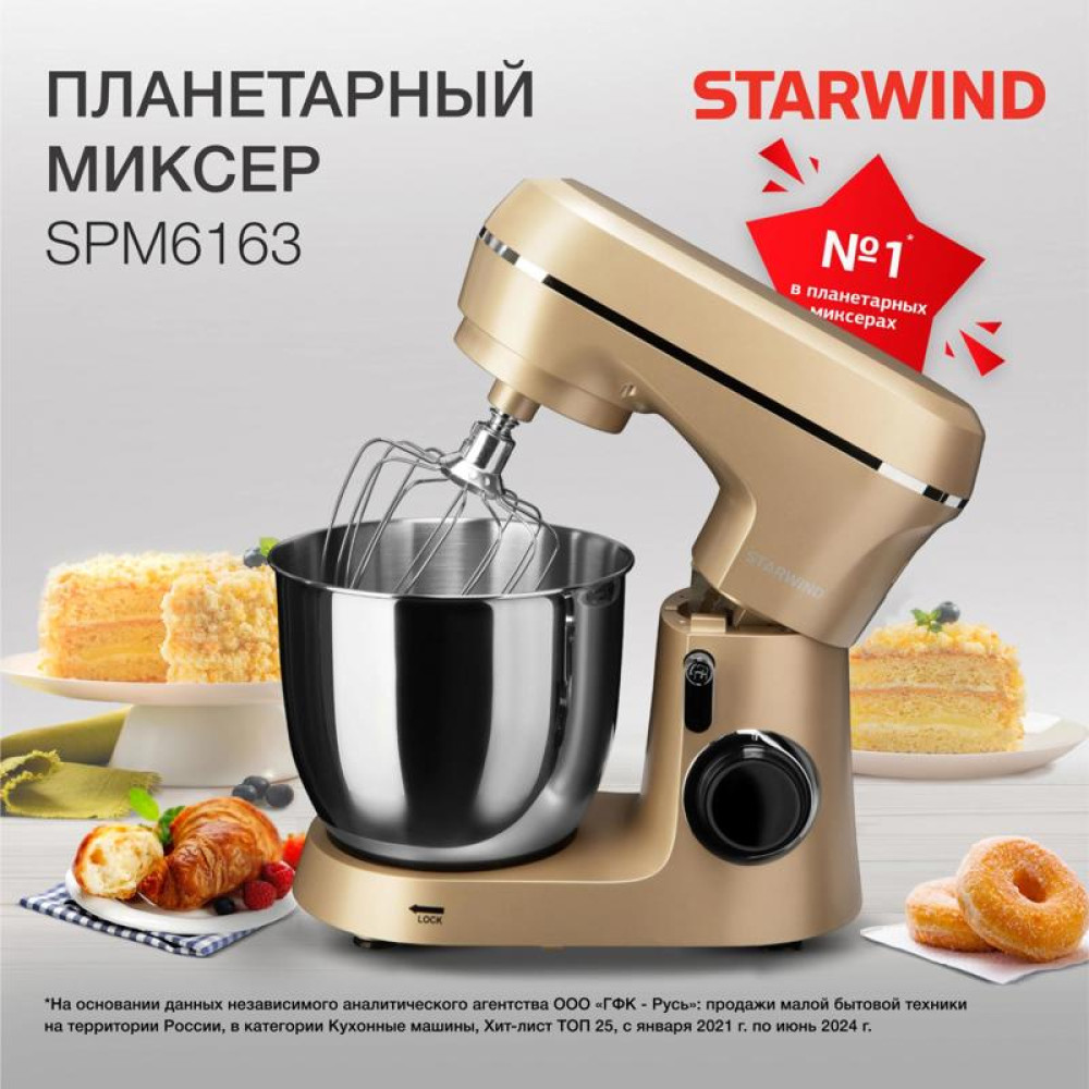 Миксер планетарный Starwind SPM6163 1300Вт золотистый