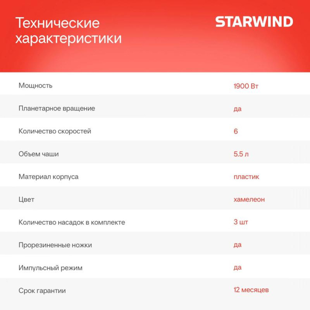 Миксер планетарный Starwind SPM7166 1900Вт хамелеон
