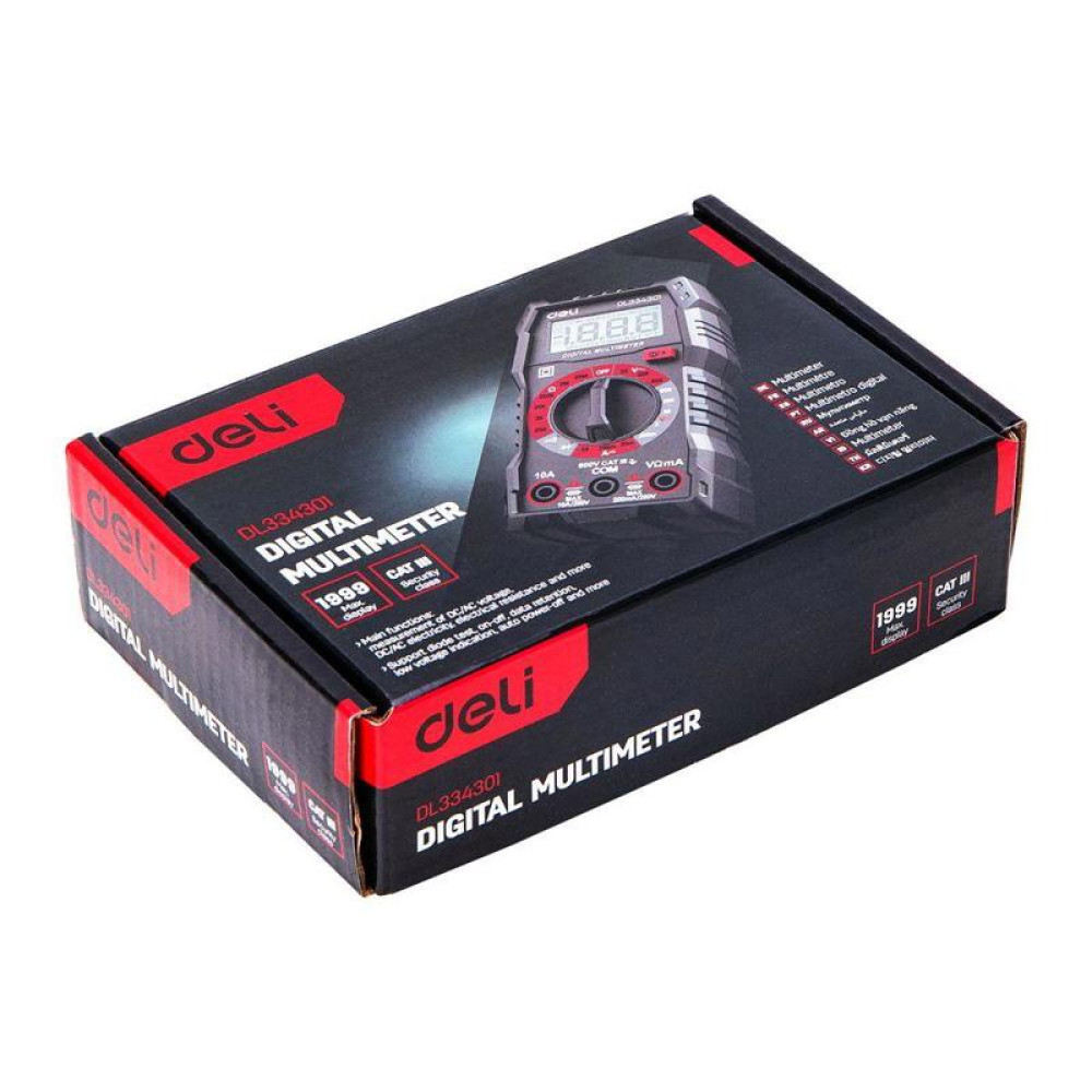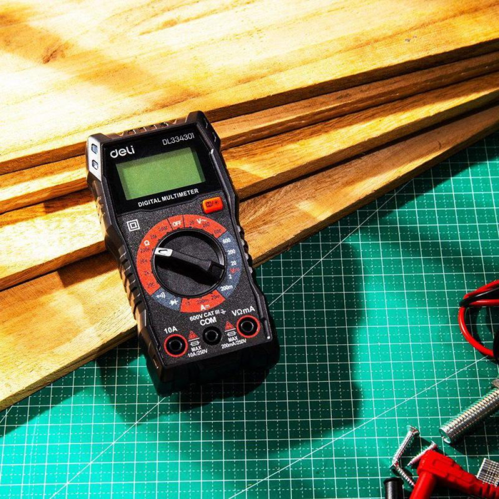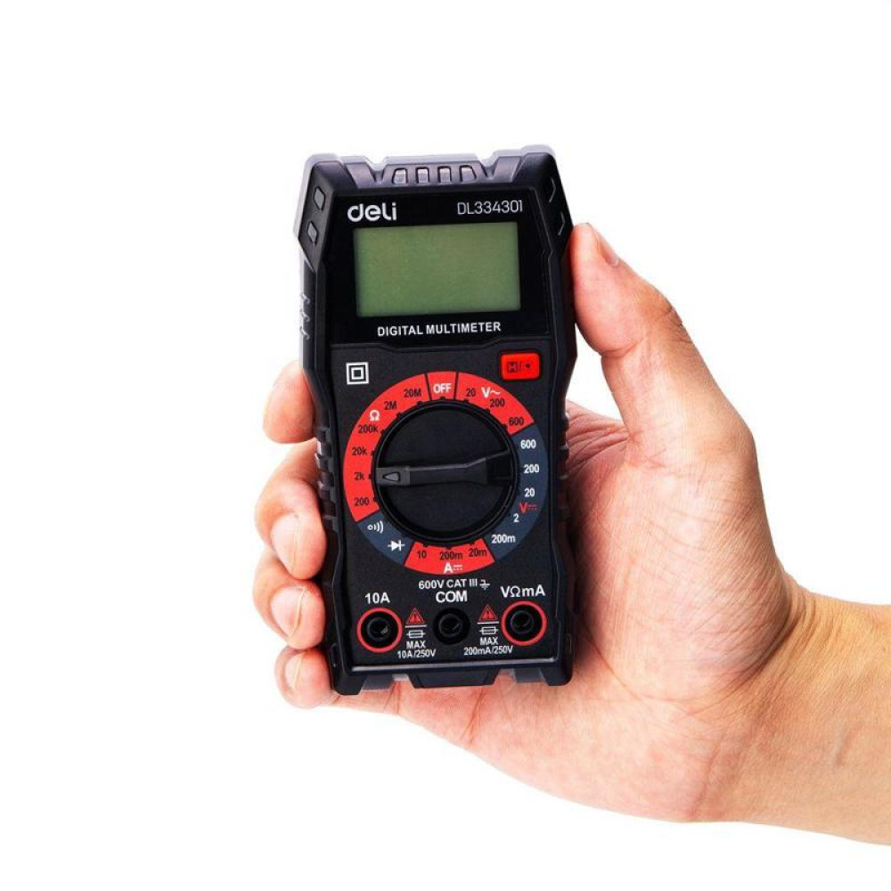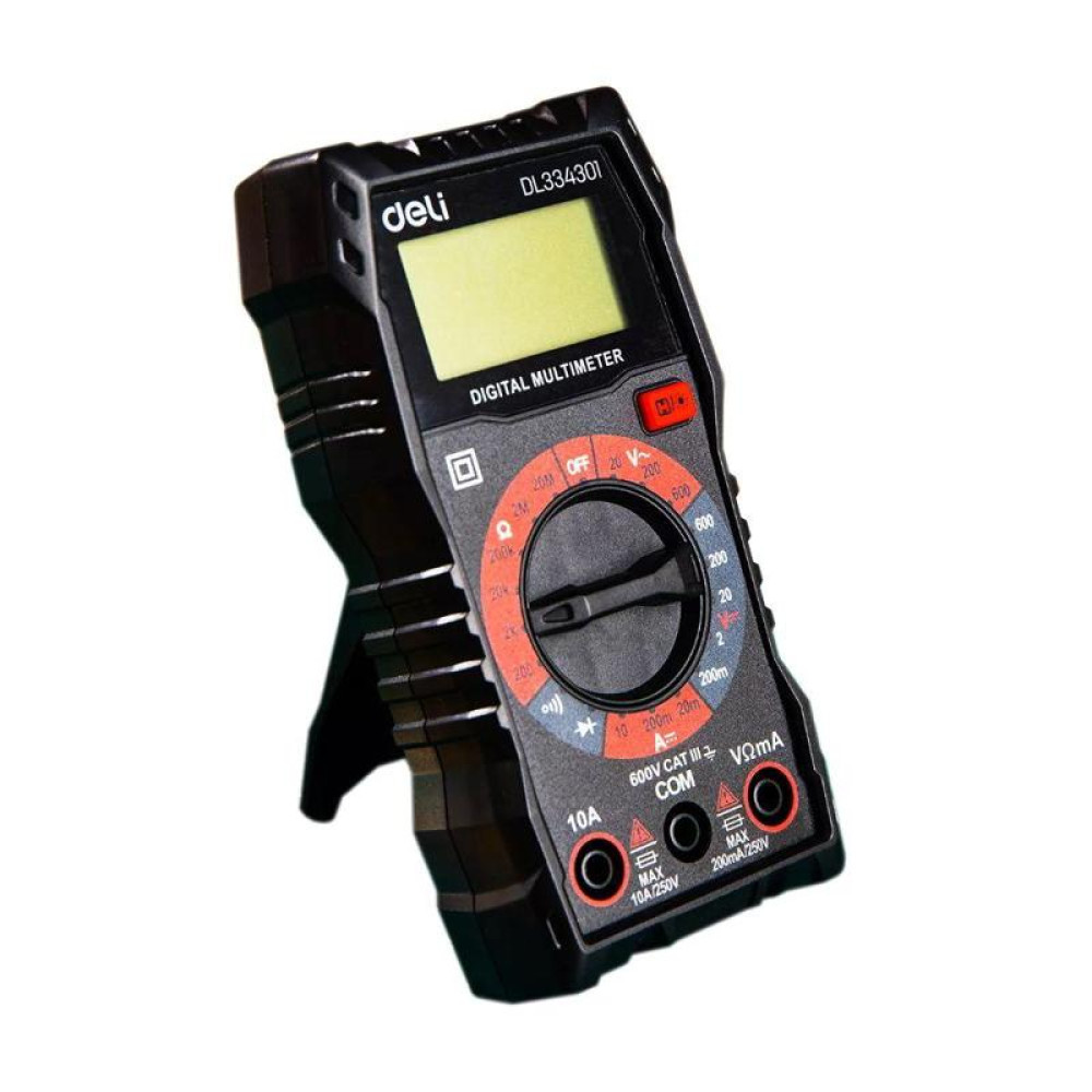 Многофункциональный цифровой мультиметр Deli DL334301 напряж. 0,2-600В, сила тока 0,02-10А, сопр. 0,0002-20 МОм, ЖК-дисплей