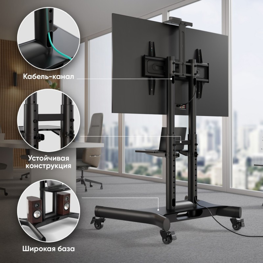 Мобильная стойка ONKRON TS1551 предназначена для ТВ диагональю экрана от 40 до 70 дюймов (101,6 – 177,8 см).
