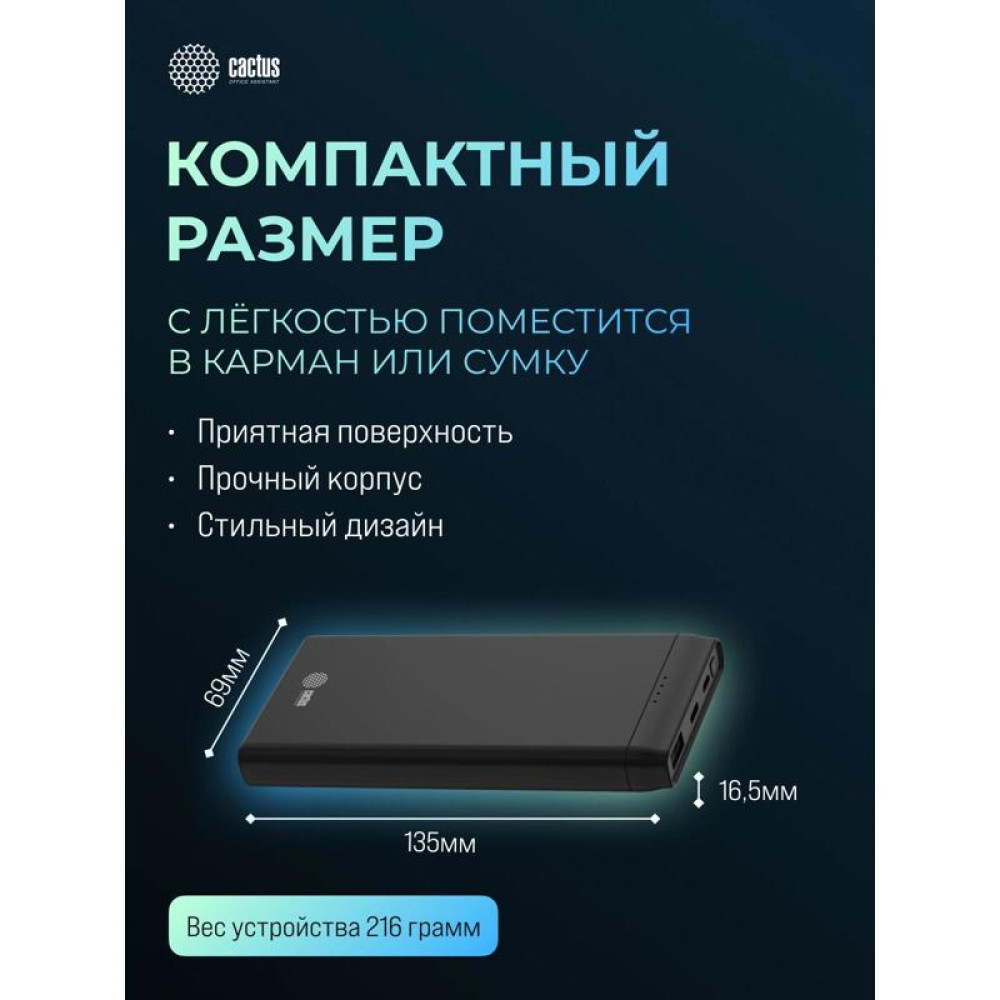 Мобильный аккумулятор Cactus CS-PBFSFT-10000 10000mAh 10.5W 2.1A 2xUSB-A черный