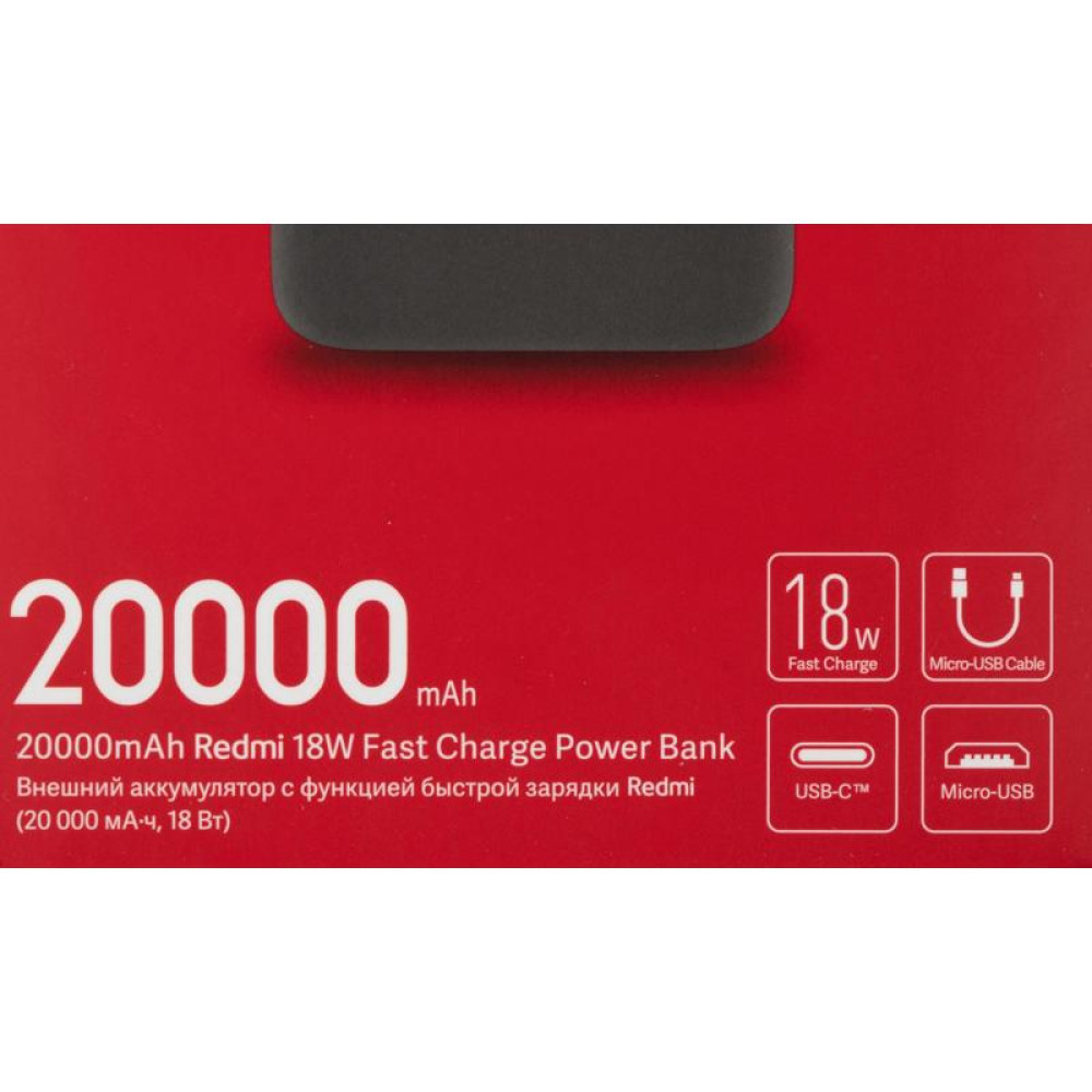Мобильный аккумулятор Xiaomi Redmi PB200LZM 20000mAh QC3.0 18W 2.4A 2xUSB-A черный (VXN4304GL)