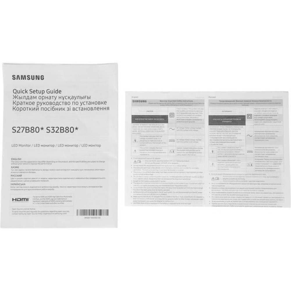 Монитор 32" SAMSUNG S32B800PXI (ViewFinity S8 S80PB UHD) Black (IPS, 3840x2160, HDMI+DP+Type C (90W), USB Hub, LAN, 5 ms, 178°/178°, 350 cd/m, 1000:1, 60Hz)