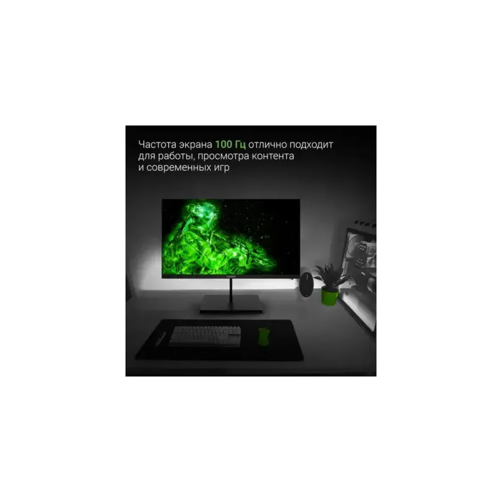 Монитор Digma Progress 22A501F подходит для ежедневной работы в браузере и просмотра видеоконтента. Также на нем можно играть в современные компьютерные игры. Он обладает повышенной частотой обновления 100 Гц и поддерживает технологии FreeSync от AMD и NVIDIA G-Sync, которые служат для автоматической синхронизации вертикальной развертки экрана с фактической частотой дискретной видеокарты, что полностью исключает появление артефактов, минимизирует задержки ввода и предотвращает дрожание картинки.