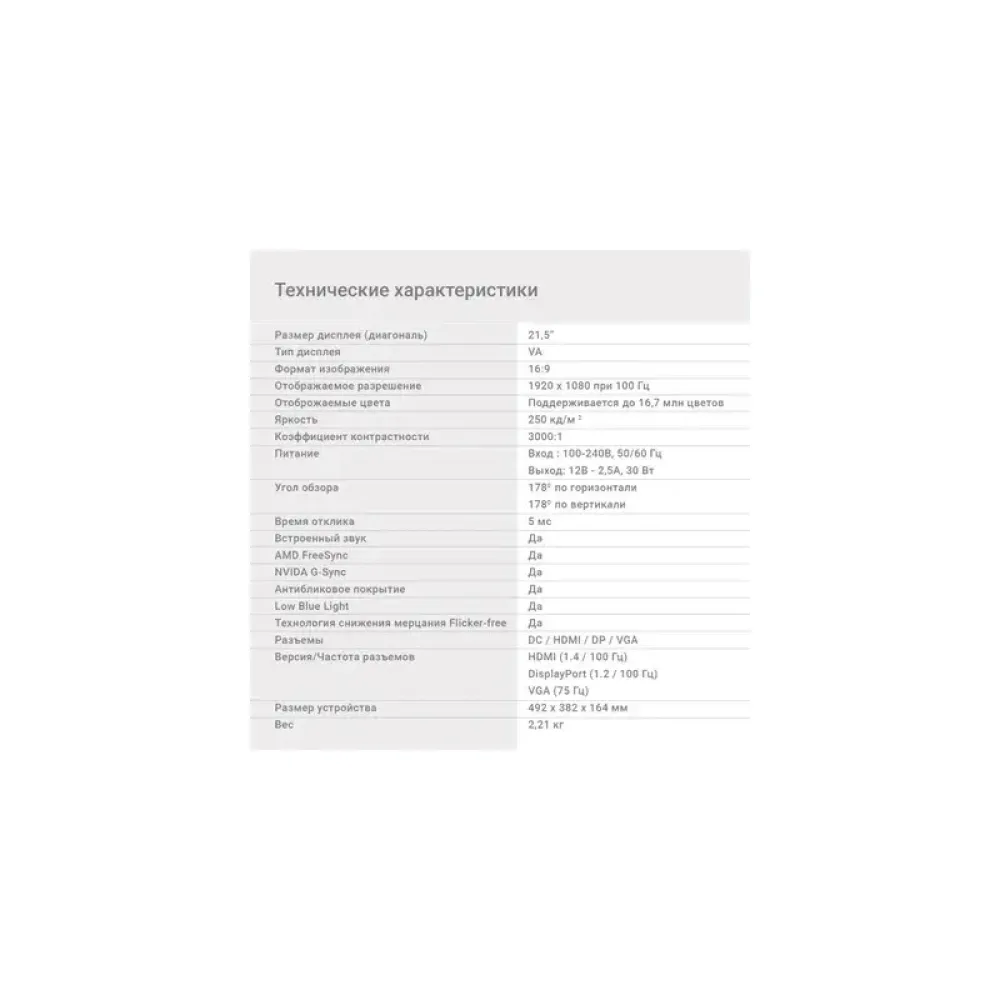 - Дополнительно AMD FreeSync; Flicker-Free; Low Blue Light