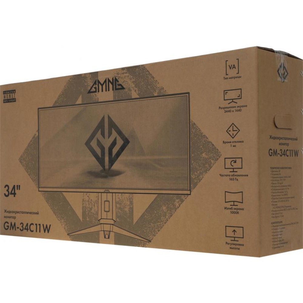 Монитор GMNG 34" Gaming GM-34C11W черный VA LED 2ms 21:9 HDMI M/M матовая HAS Piv 4000:1 300cd 178гр/178гр 3440x1440 165Hz G-Sync FreeSync DP 2K 8.57кг