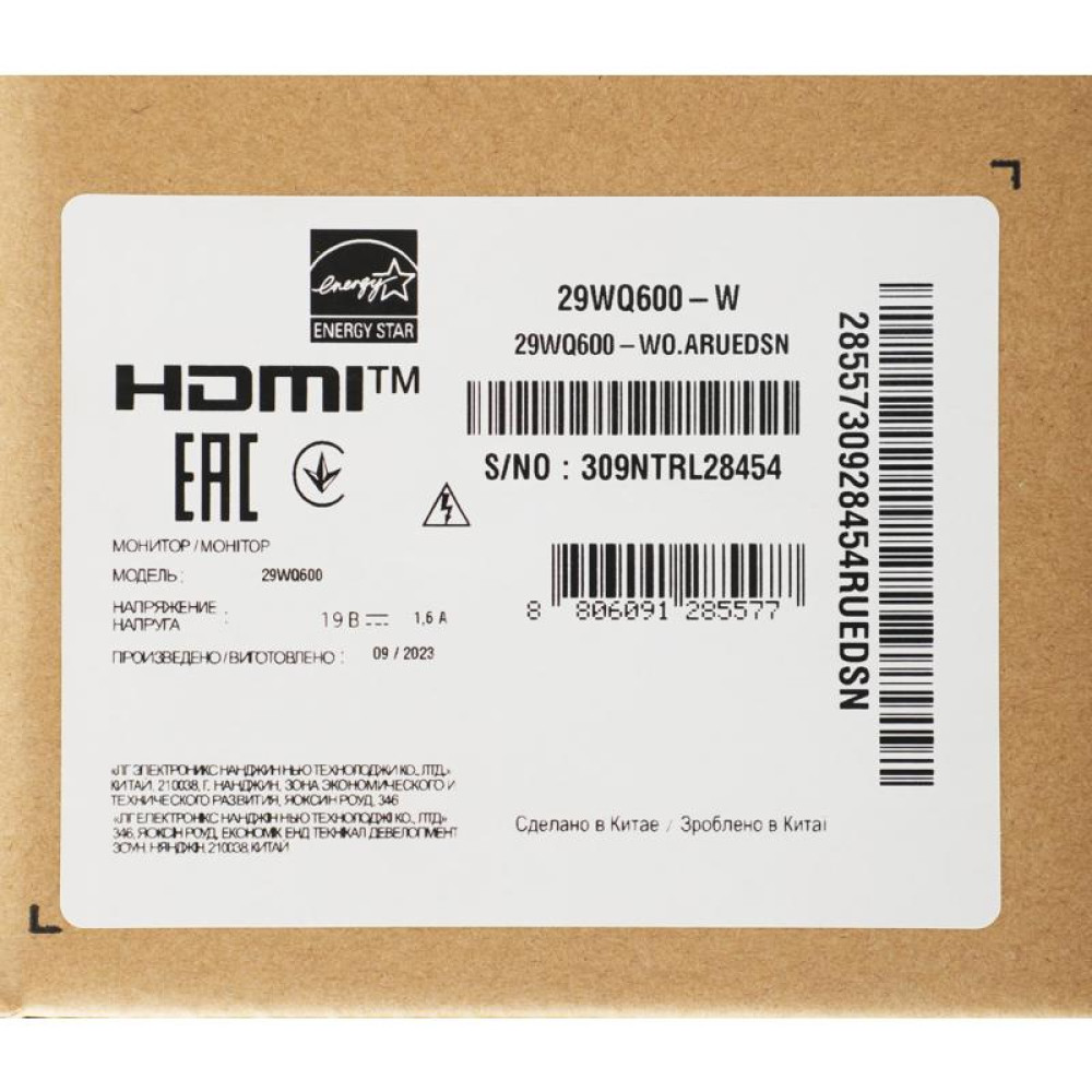 Монитор LG 29" UltraWide 29WQ600-W серебристый IPS LED 1ms 21:9 HDMI M/M матовая 250cd 178гр/178гр 2560x1080 100Hz DP UWHD USB 8.32кг