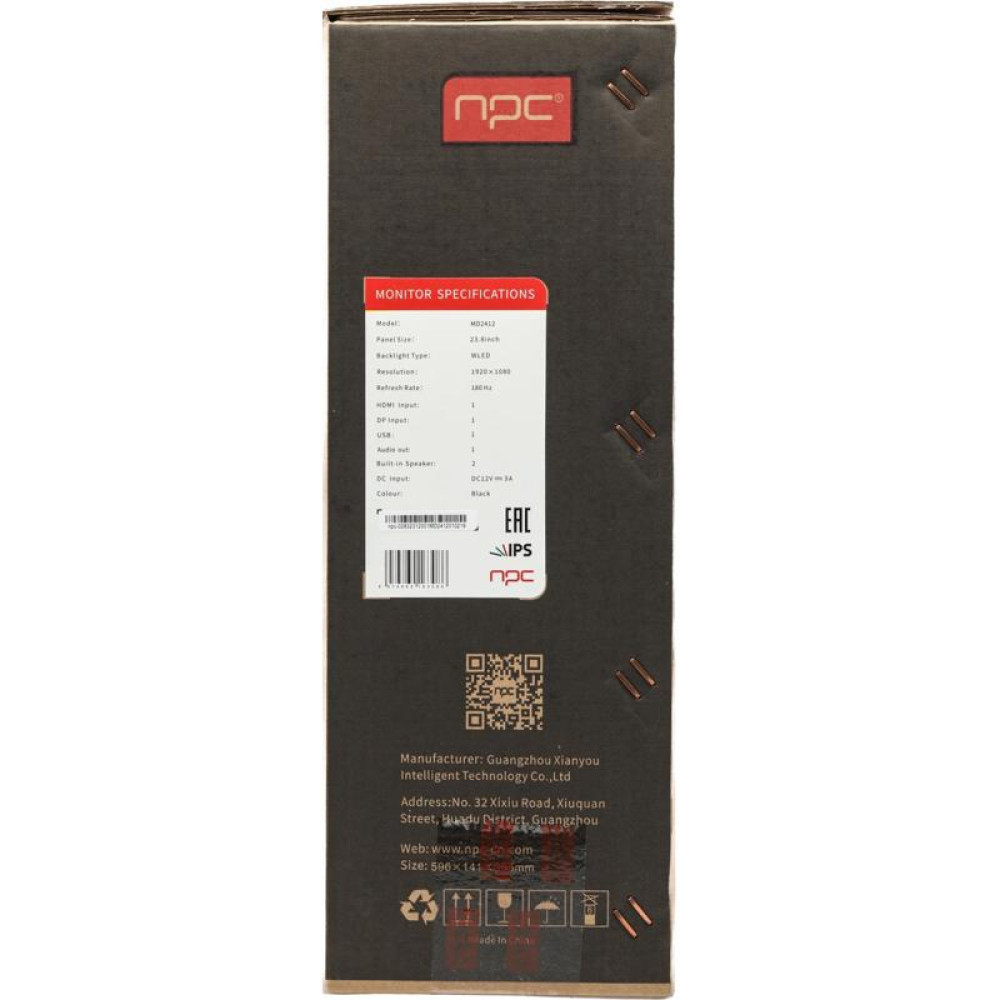 Монитор NPC 23.8" MD2412 черный IPS LED 16:9 HDMI M/M 250cd 178гр/178гр 1920x1080 180Hz G-Sync FreeSync DP FHD USB 3.12кг