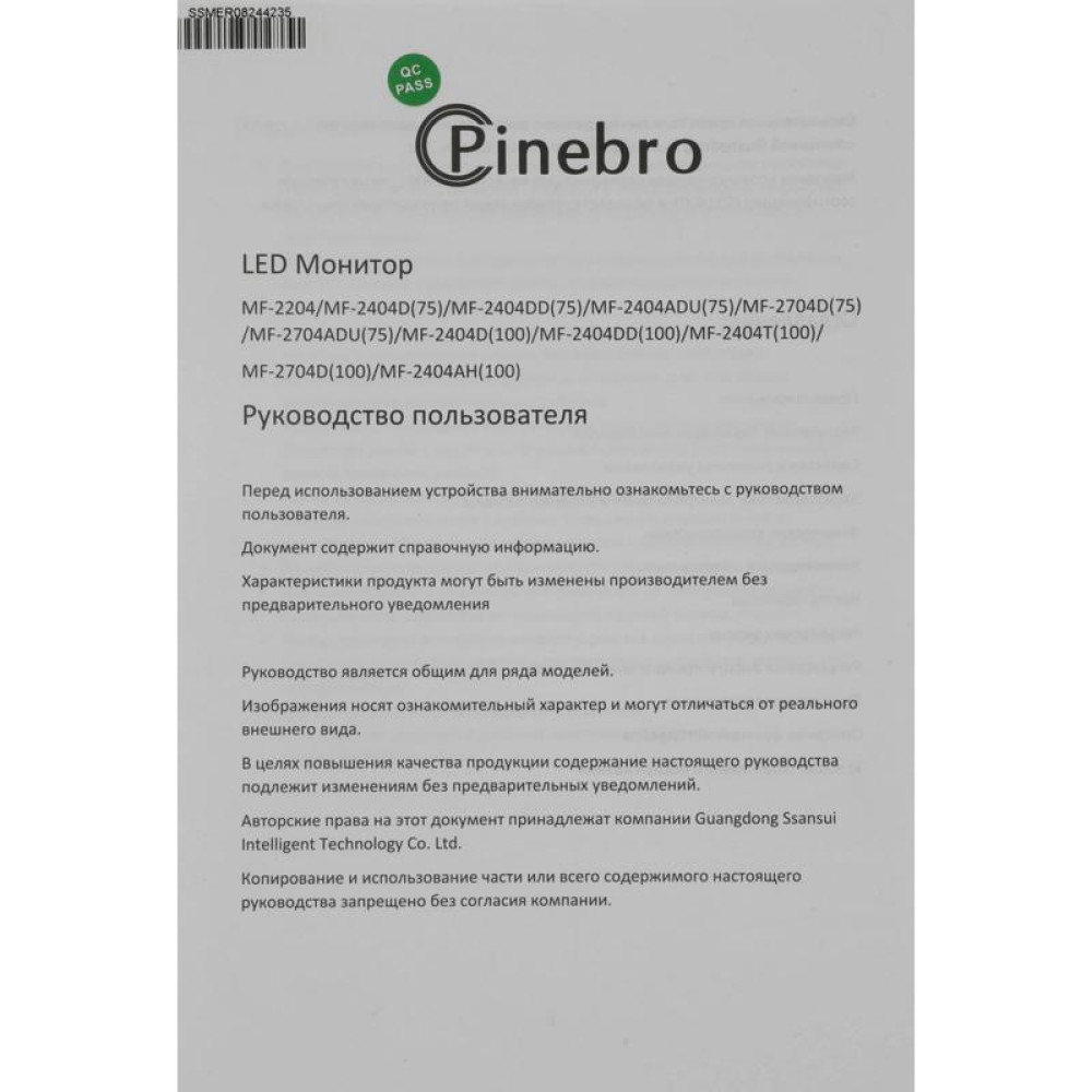 Монитор Pinebro 23.8" MF-2404AH(100) черный IPS LED 4ms 16:9 HDMI M/M матовая HAS Piv 1000:1 300cd 178гр/178гр 1920x1080 100Hz VGA FHD 3.70кг