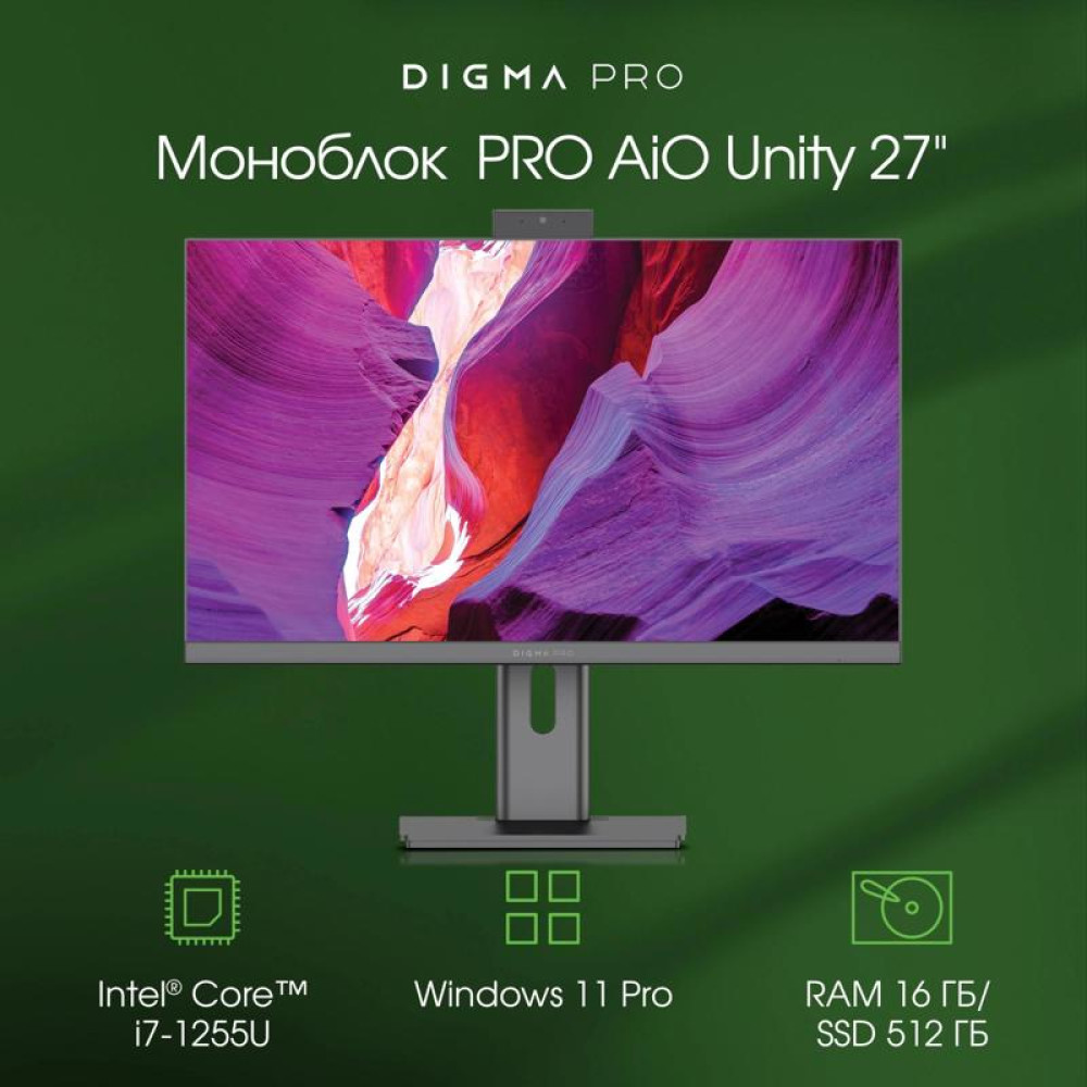Моноблок Digma Pro Unity 27" Full HD i7 1255U (1.7) 16Gb SSD512Gb Iris Xe CR Windows 11 Professional GbitEth WiFi BT 90W клавиатура мышь Cam серый/черный 1920x1080