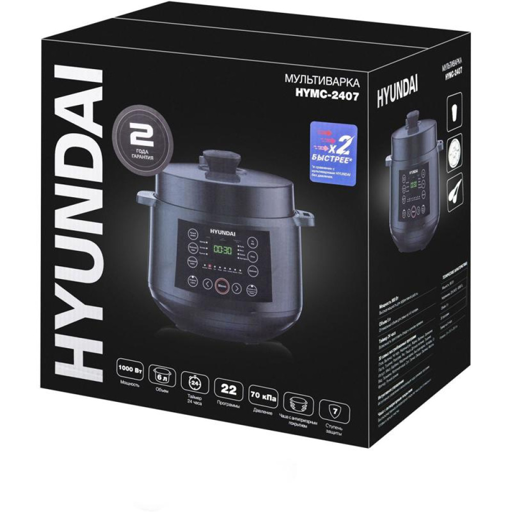 Мультиварка-скороварка Hyundai HYMC-2407 5.7л 1000Вт черный/черный