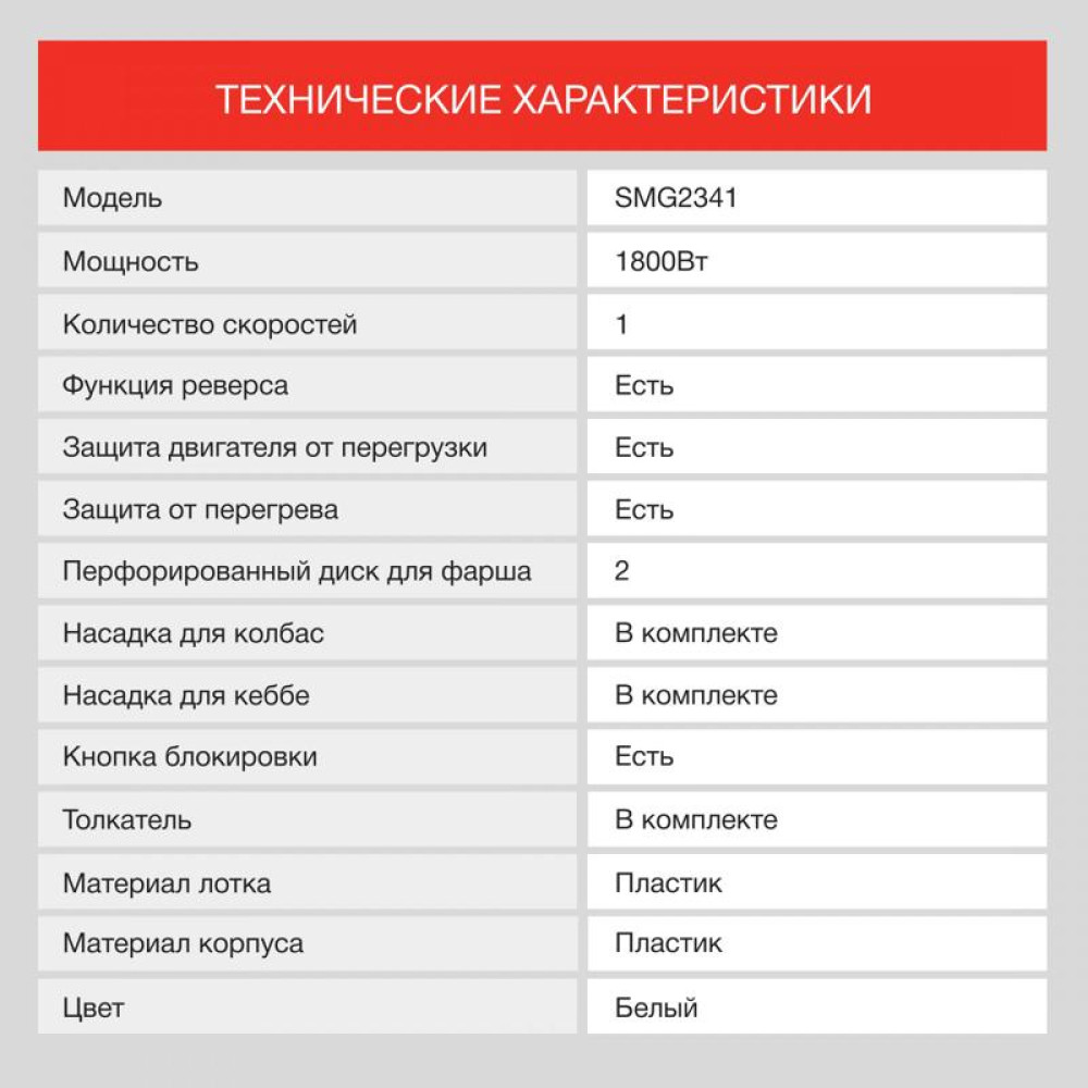 Мясорубка Starwind SMG2341 1800Вт белый