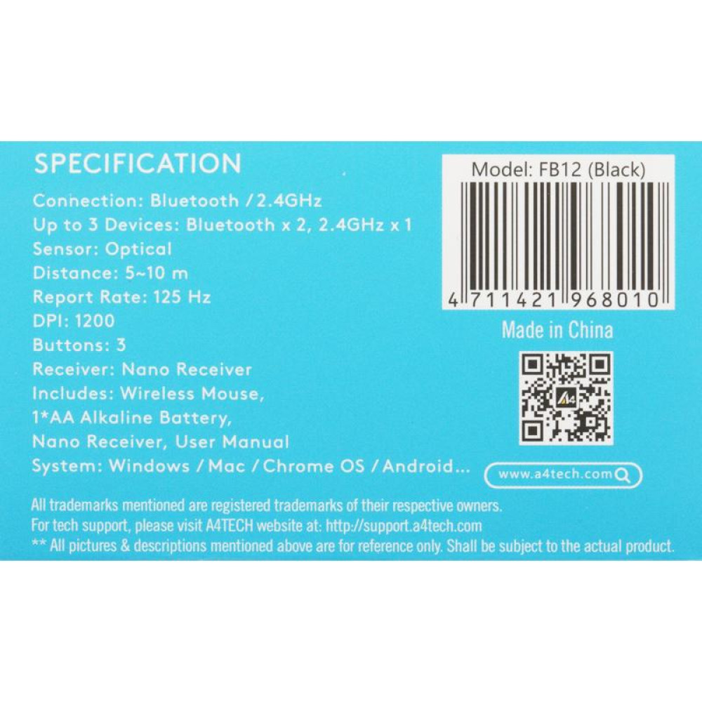 Мышь A4Tech Fstyler FB12 черный оптическая 1200dpi беспров. BT/Radio USB 3but (FB12 BLACK)
