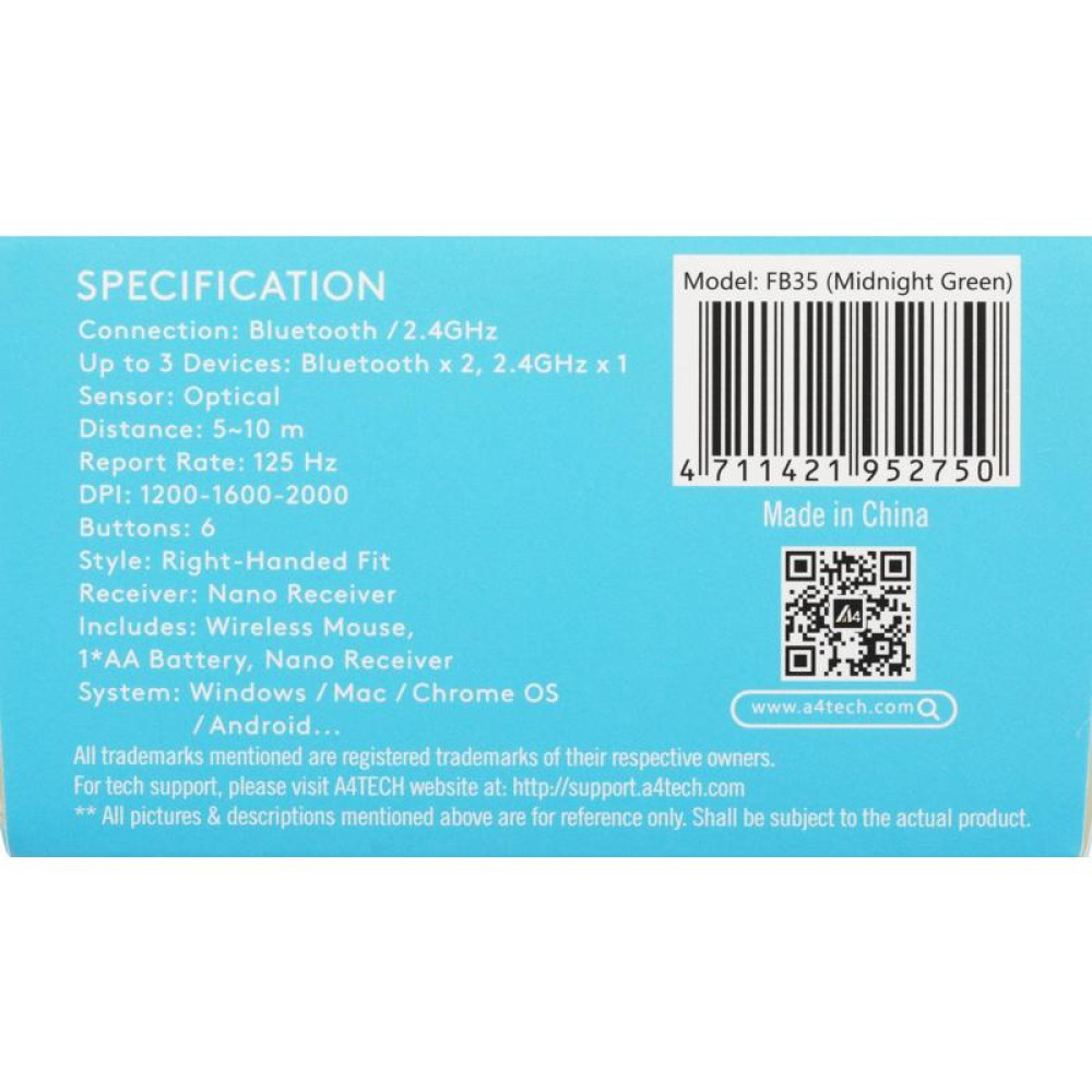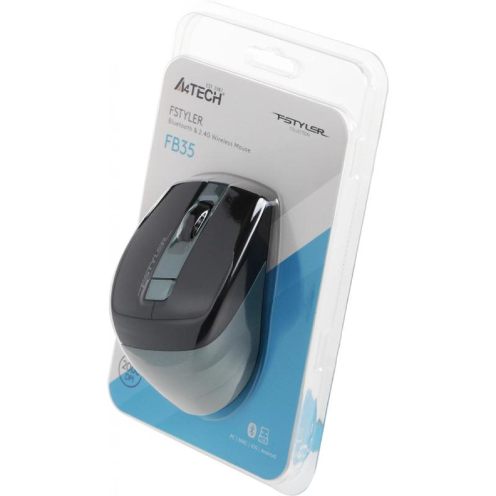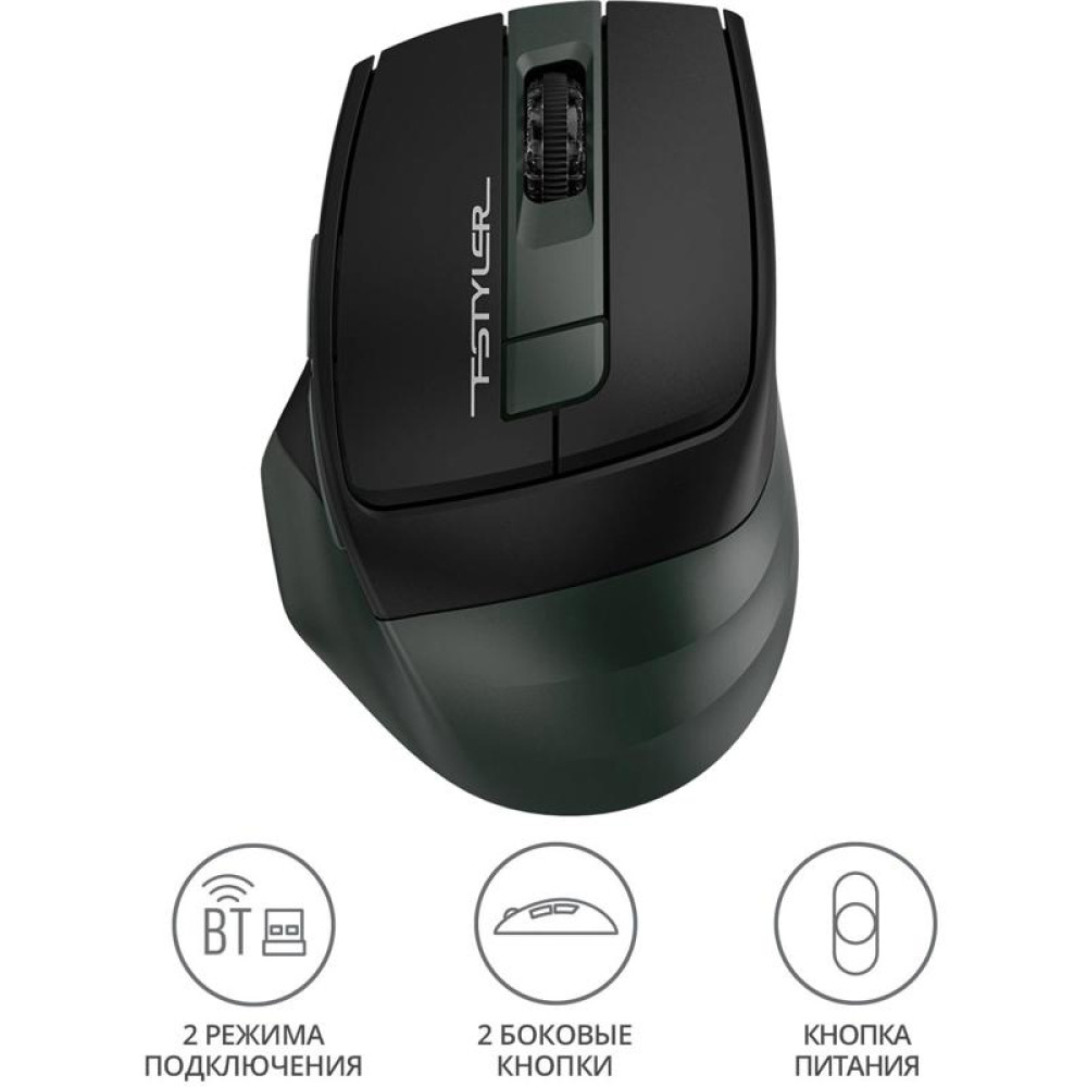 Мышь A4Tech Fstyler FB35 зеленый/черный оптическая 2000dpi беспров. BT/Radio USB для ноутбука 6but (FB35 MIDLIGHT GREEN)